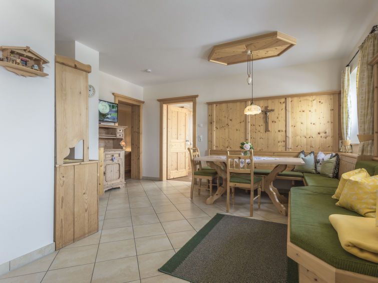 "Lodron", 3-room apartment 50 m2, on the ground floor. Beautiful and rustic furnishings: 2 double bedrooms with veranda, each room with 1 double bed (180 cm, length 200 cm), TV (flat screen). Living/dining room with flat screen. Open kitchen (oven, dishwasher, 4 ceramic glass hob hotplates, freezer, electric coffee machine) with dining table.