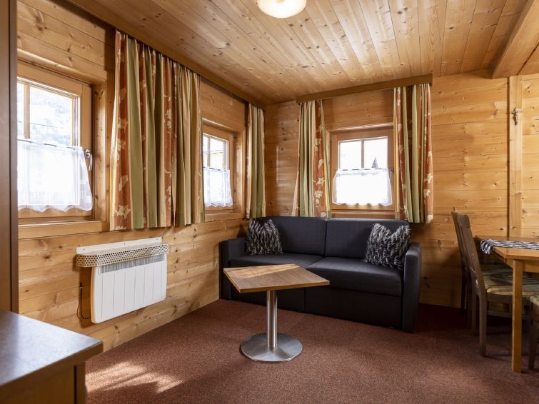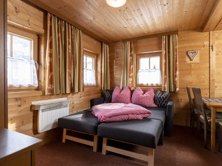 "Lindenalm", 3-room house 60 m2. Beautiful and wooden furniture furnishings: entrance hall. 2 double bedrooms, each room with radio. Living/dining room with 1 double sofabed and open-hearth fireplace (only for decoration), flat screen. Open kitchen (4 hot plates, oven, dishwasher, toaster, kettle, microwave, electric coffee machine).