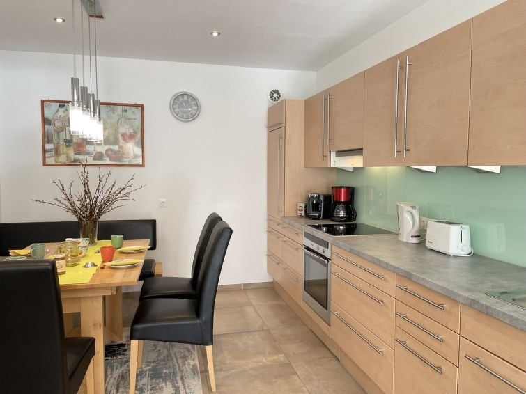 "Sonnseit Living", 2-room apartment 65 m2, on the ground floor. Bright, beautiful and modern furnishings: living/sleeping room with 1 double sofabed, dining table, dining nook, satellite TV and radio. Exit to the terrace. 1 double bedroom. Open kitchen (oven, dishwasher, 4 ceramic glass hob hotplates, toaster, kettle, electric coffee machine).