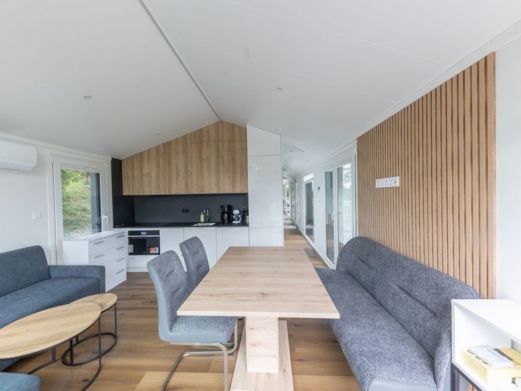 "Tiny Haus", 4-room house 60 m2. Modern and cosy furnishings: 1 double bedroom. 1 room with 2 beds. 1 room with 1 bed. Kitchen-/living room (oven, dishwasher, 4 induction hot plates, toaster, kettle, microwave, electric coffee machine) with dining table, 1 double sofabed (180 cm, length 200 cm), satellite TV.