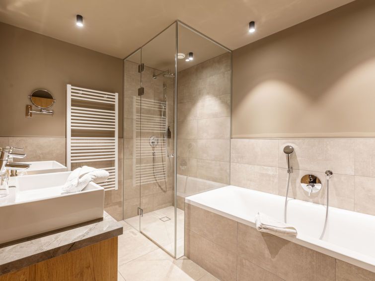 "Superior mit 1 Schlafzimmeer", 2-room apartment 54 m2. Bright, comfortable and tasteful furnishings: living/dining room with dining table and satellite TV (flat screen). 1 double bedroom. Open kitchen (oven, dishwasher, 4 ceramic glass hob hotplates, toaster, kettle, microwave, electric coffee machine).