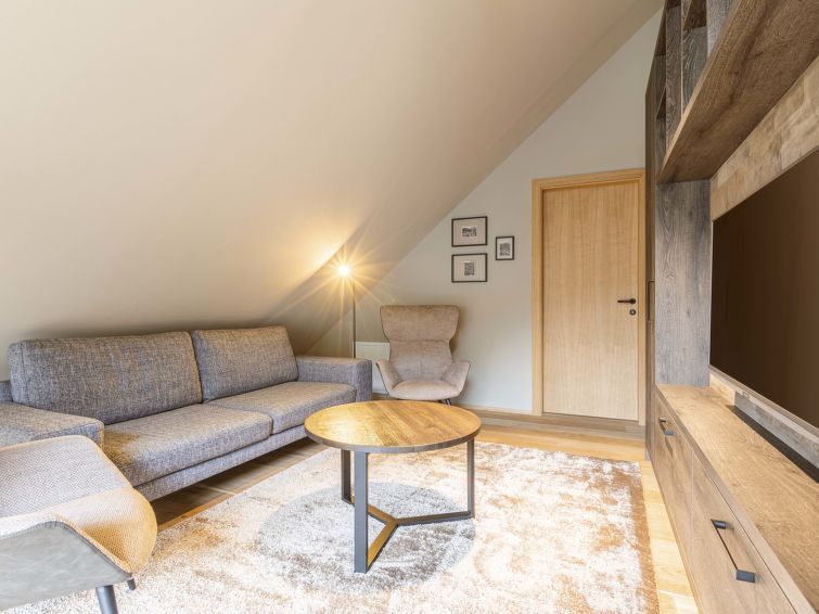 "Superior Penthouse mit 2 Schlafzimmern", 3-room apartment 92 m2 on 2 levels. Bright, comfortable and tasteful furnishings: living/sleeping room with 1 double sofabed, dining table and satellite TV (flat screen). 2 double bedrooms. Open kitchen (oven, dishwasher, 4 ceramic glass hob hotplates, toaster, kettle, microwave, electric coffee machine).