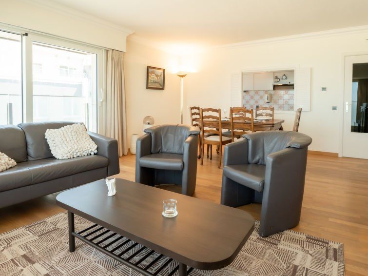 "Atlanta with seaview", 3-room apartment on 6th floor. Object suitable for 4 adults. Practical and cosy furnishings: entrance hall with separate WC. Living/dining room with dining table. 2 double bedrooms, each room with 1 double bed (1 x 180 cm, length 200 cm). Kitchen (5 hot plates, oven, dishwasher, toaster, kettle, electric coffee machine).