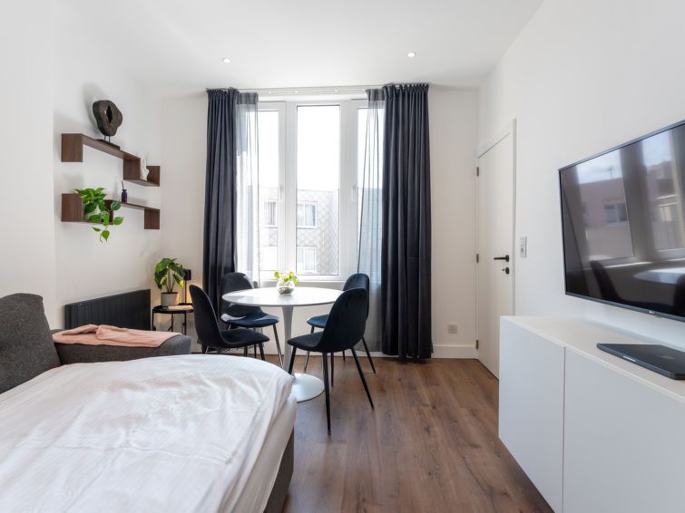 "Centrally located "Les Anemones", 2-room apartment 65 m2 on 1st floor. Bright, comfortable and cosy furnishings: living/dining room with 1 sofabed (140 cm, length 200 cm), digital TV and international TV channels. 1 double bedroom with 1 double bed (160 cm, length 200 cm). Open kitchen (oven, dishwasher, 4 induction hot plates, toaster, kettle, microwave, electric coffee machine) with dining table.