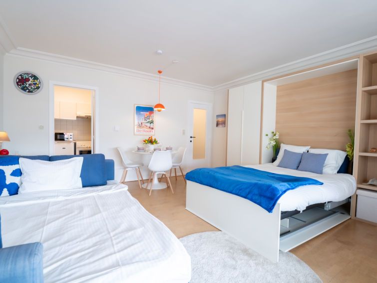 "Cosy @ the beach studio with pool", 1-room apartment on 1st floor. Object suitable for 2 adults + 1 child. Comfortable and tasteful furnishings: entrance hall. Open living/sleeping room with 1 sofabed (140 cm, length 200 cm), 1 fold-away bed (160 cm, length 200 cm), TV and international TV channels (flat screen).