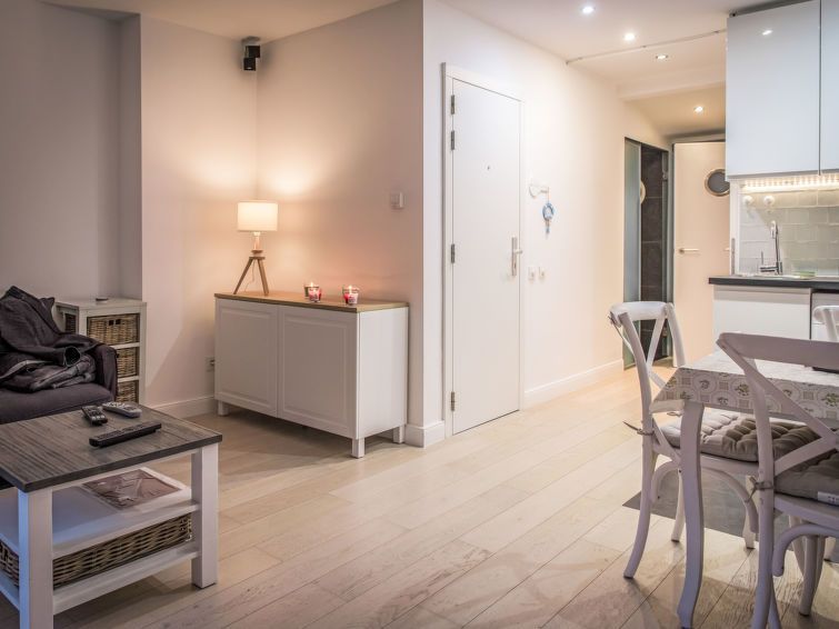 "Centrally located "Key Point", 3-room apartment 45 m2 on 4th floor. Comfortable and cosy furnishings: living/dining room with digital TV, international TV channels and Home cinema. 1 double bedroom with 1 double bed (160 cm, length 200 cm). 1 children's room with 1 x 2 bunk beds (90 cm, length 200 cm).