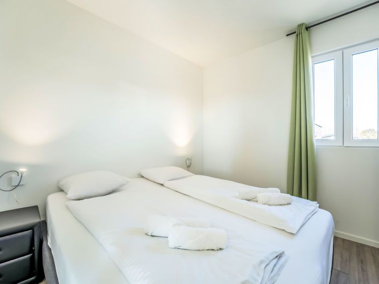 "New Dahlia 1", 3-room chalet 44 m2. Comfortable and modern furnishings: open living/dining room with dining table, digital TV, international TV channels and air conditioning. Exit to the terrace. 1 double bedroom with 1 double bed (160 cm, length 200 cm), hand-basin and shower/WC.