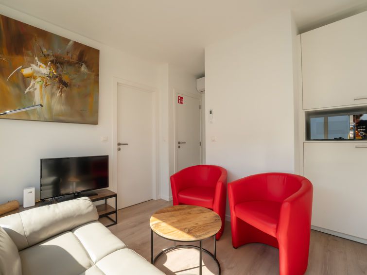 "New Dahlia 15", 3-room chalet 44 m2. Comfortable and modern furnishings: open living/dining room with dining table, digital TV, international TV channels and air conditioning. Exit to the terrace. 1 double bedroom with 1 double bed (160 cm, length 200 cm), hand-basin, shower/WC and air conditioning.