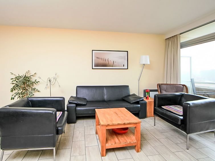 "Appartement 64/303", 2-room apartment 60 m2 on 3rd floor. Comfortable furnishings: living/dining room with digital TV, DVD and electric heating. Exit to the balcony. 1 room with 1 bed (140 cm, length 200 cm), 1 x 1 bunk beds (90 cm, length 200 cm). Open kitchen (4 hot plates, toaster, kettle, electric coffee machine, combination microwave).