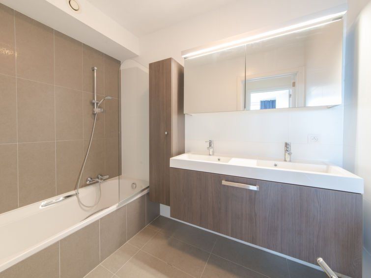A nicely furnished apartment in a residential area in Bredene, just outside the hustle and bustle. The kitchen is well equipped, the sofa chairs are stylish but a bit impractical because they slip around easily. Two beautiful balconies, view of coastal road or parking lot and two high-rise buildings. Unfortunately, the mattress of the double bed is much too soft, you should urgently invest in a new one, and some have already complained. The water pressure in the shower is very low, especially with hot water.