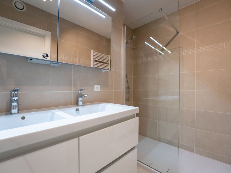 "Royal Golf Garden II", 3-room apartment on 1st floor. Object suitable for 2 adults + 2 children. Entrance hall with separate WC. 1 double bedroom with 1 double bed (1 x 160 cm, length 200 cm). 1 children's room with 1 x 2 bunk beds (90 cm, length 200 cm). Open kitchen (oven, dishwasher, 4 induction hot plates, toaster, kettle, microwave).