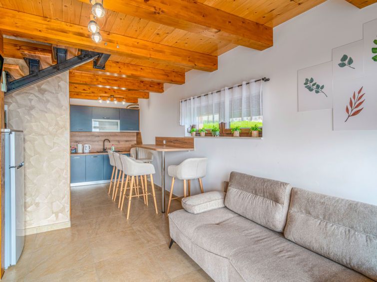 6-room house 140 m2 on 3 levels. Living/dining room with kitchen corner and satellite TV (flat screen), wood-burning stove. Living/dining room with kitchen corner and satellite TV. Open kitchen (4 induction hot plates, kettle). 2 showers/WC. On the lower ground floor: (exterior staircase).