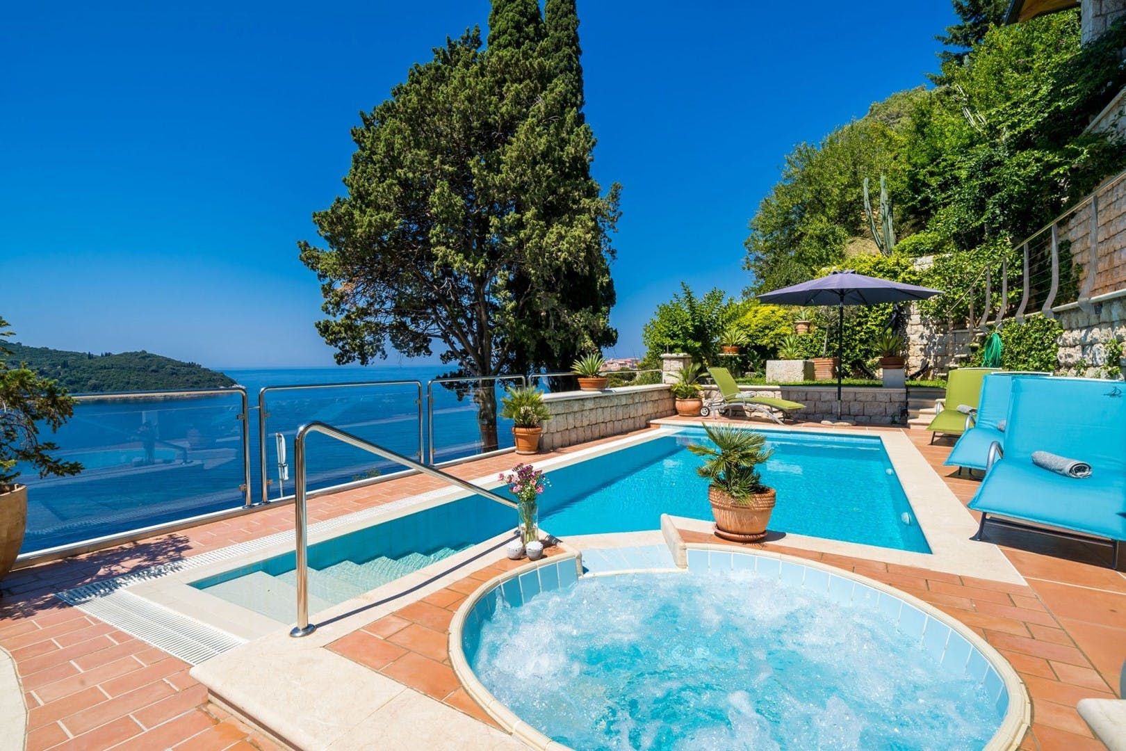 This villa is located on the Dalmatian Coast, a short walk from Sveti Jakov Beach and a ten-minute drive from Dubrovnik. Set across four floors, this home is ideal for large groups who want to holiday under the same roof without feeling on top of each other. Head outside, and you’ll find a swimming pool, Jacuzzi and unobstructed views of the water. The upper terrace is complete with a seating area and a table and chairs for alfresco suppers.