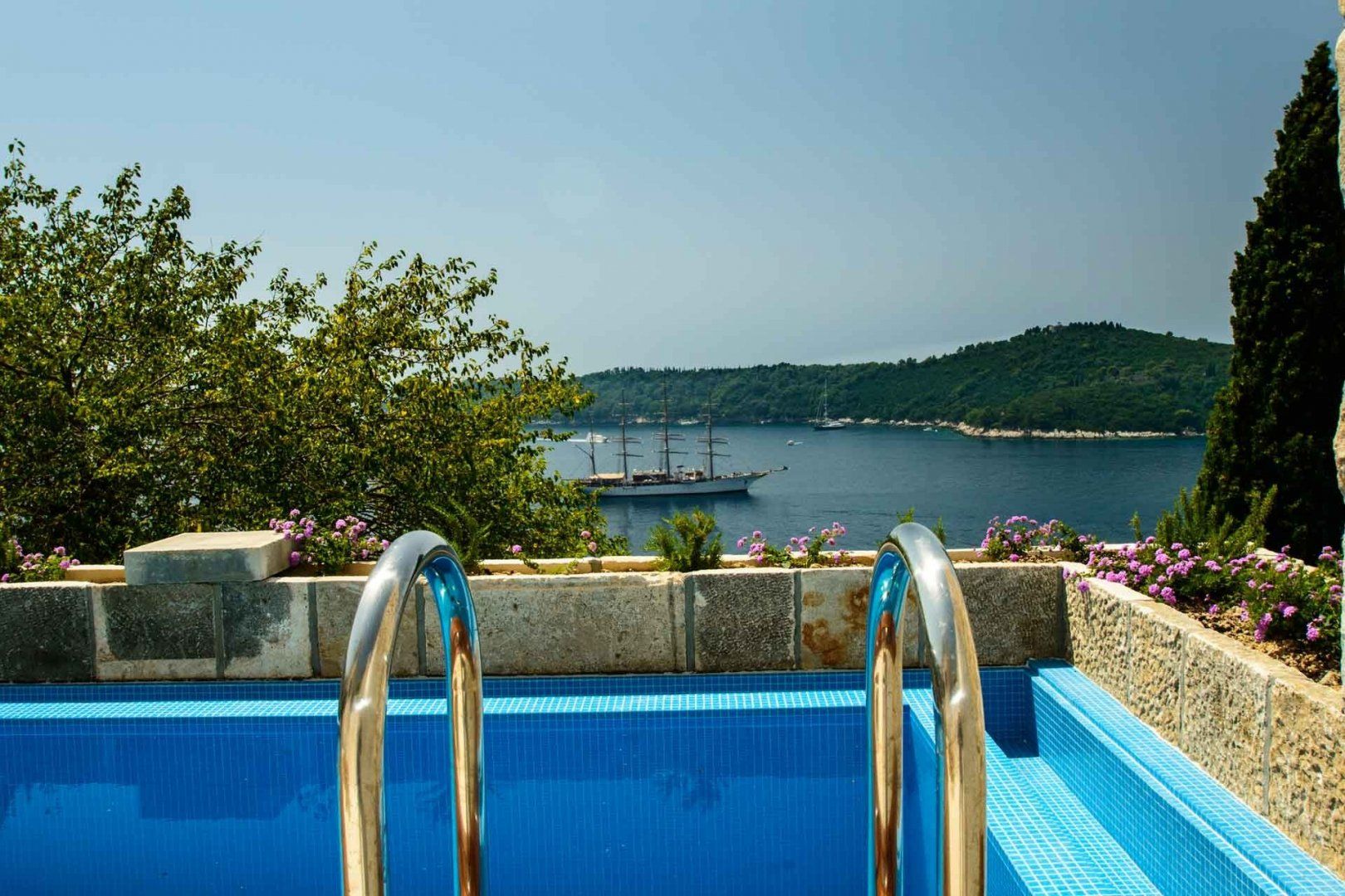 This towering villa sits in an enviable spot in central Dubrovnik. It's around a fifteen-minute walk to the shambling alleyways and historic sights of the famous Old Town, while also being a short stroll from the nearest pebble beach – Betina Cave Beach. But there’s plenty to keep you entertained at the villa itself.