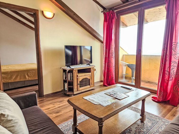 3-room apartment 80 m2, on the top floor, south facing position. Partly with sloping ceilings, beautiful and cosy furnishings: large living/dining room, with sloping ceilings, ceiling height 120 - 300 cm with satellite TV and air conditioning. Exit to the terrace. 1 room with 1 french bed (160 cm, length 200 cm).