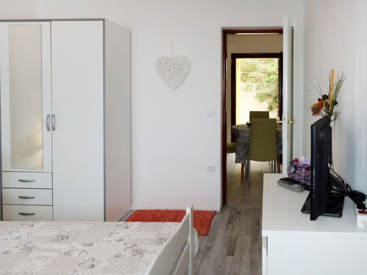 "Borovina", 1-room apartment 24 m2, on the upper ground floor. 1 room with 1 french bed, 1 sleeping facility and satellite TV. Exit to the balcony. Kitchen (4 hot plates, oven, toaster, kettle, microwave, electric coffee machine) with dining table. Shower/WC. No heating option. Balcony 4 m2.