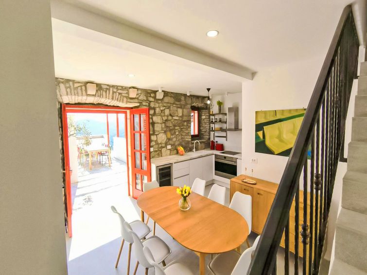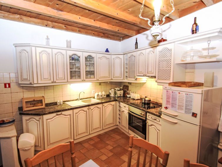 4-room terraced house 150 m2 on 2 levels, south facing position. Living room 25 m2 with cable TV and international TV channels. Exit to the terrace. Kitchen (oven, 4 ceramic glass hob hotplates, toaster, kettle, microwave, freezer, electric coffee machine). 2 showers/WC. Upper floor: 2 rooms, each room with 2 beds (90 cm, length 200 cm), air conditioning.