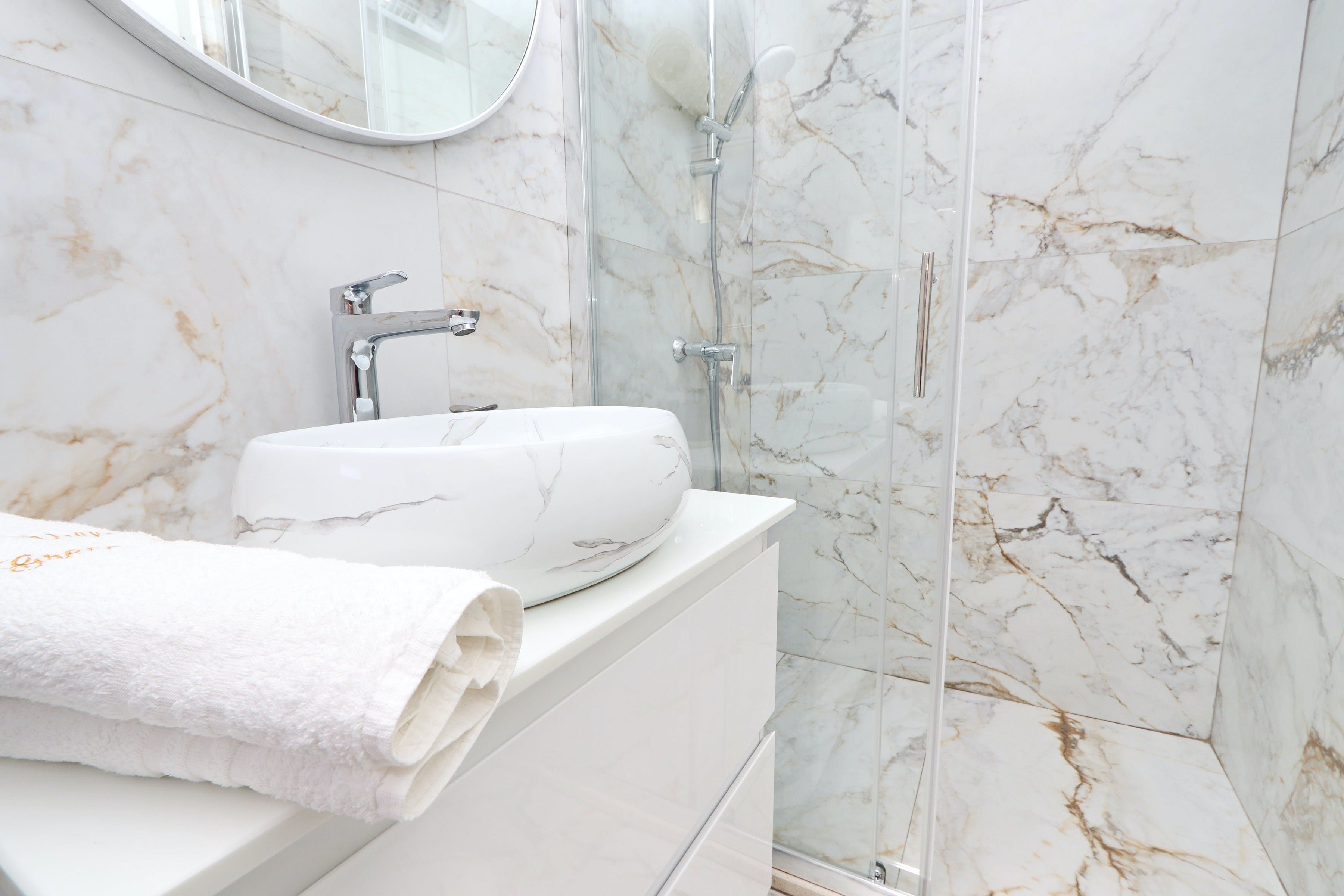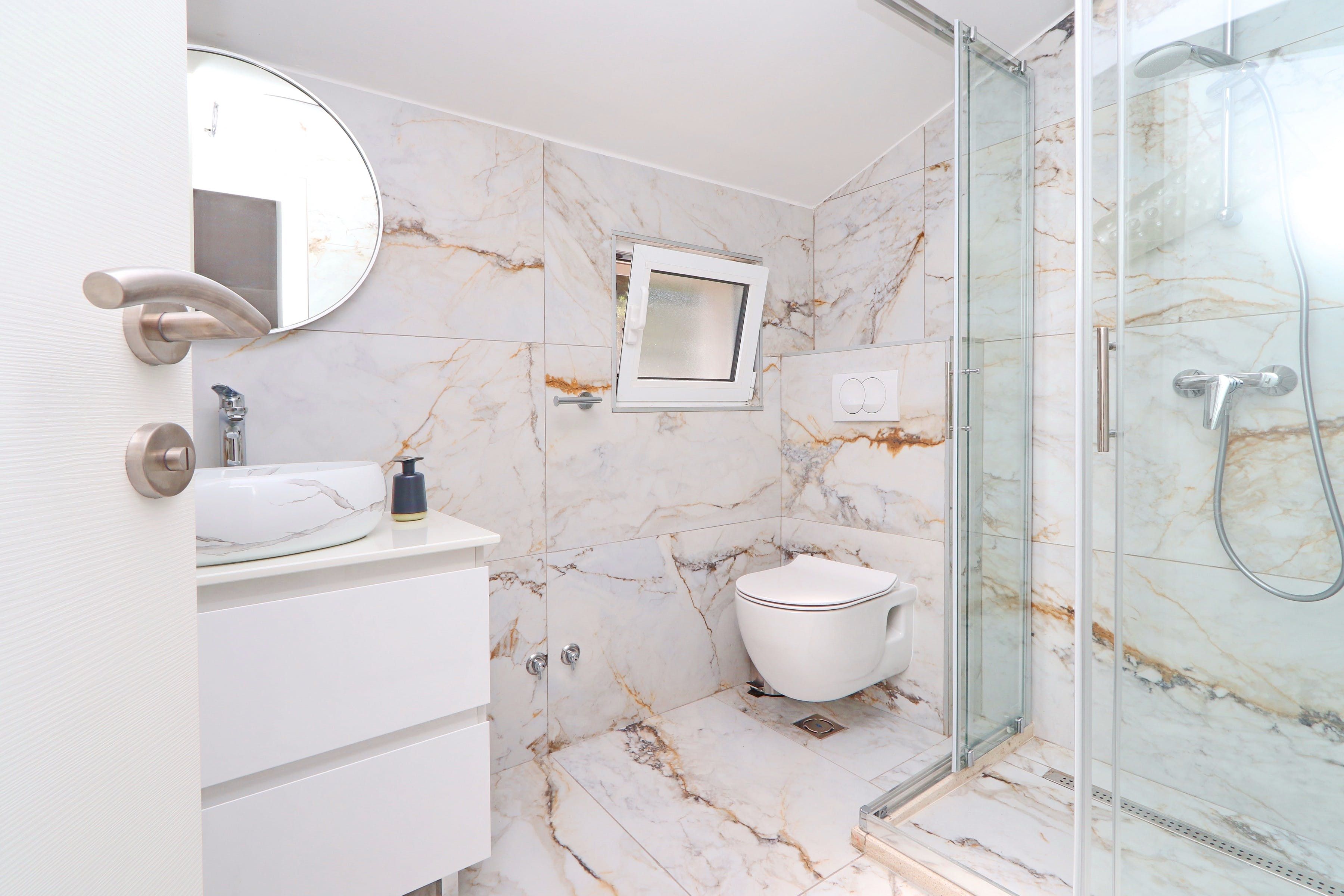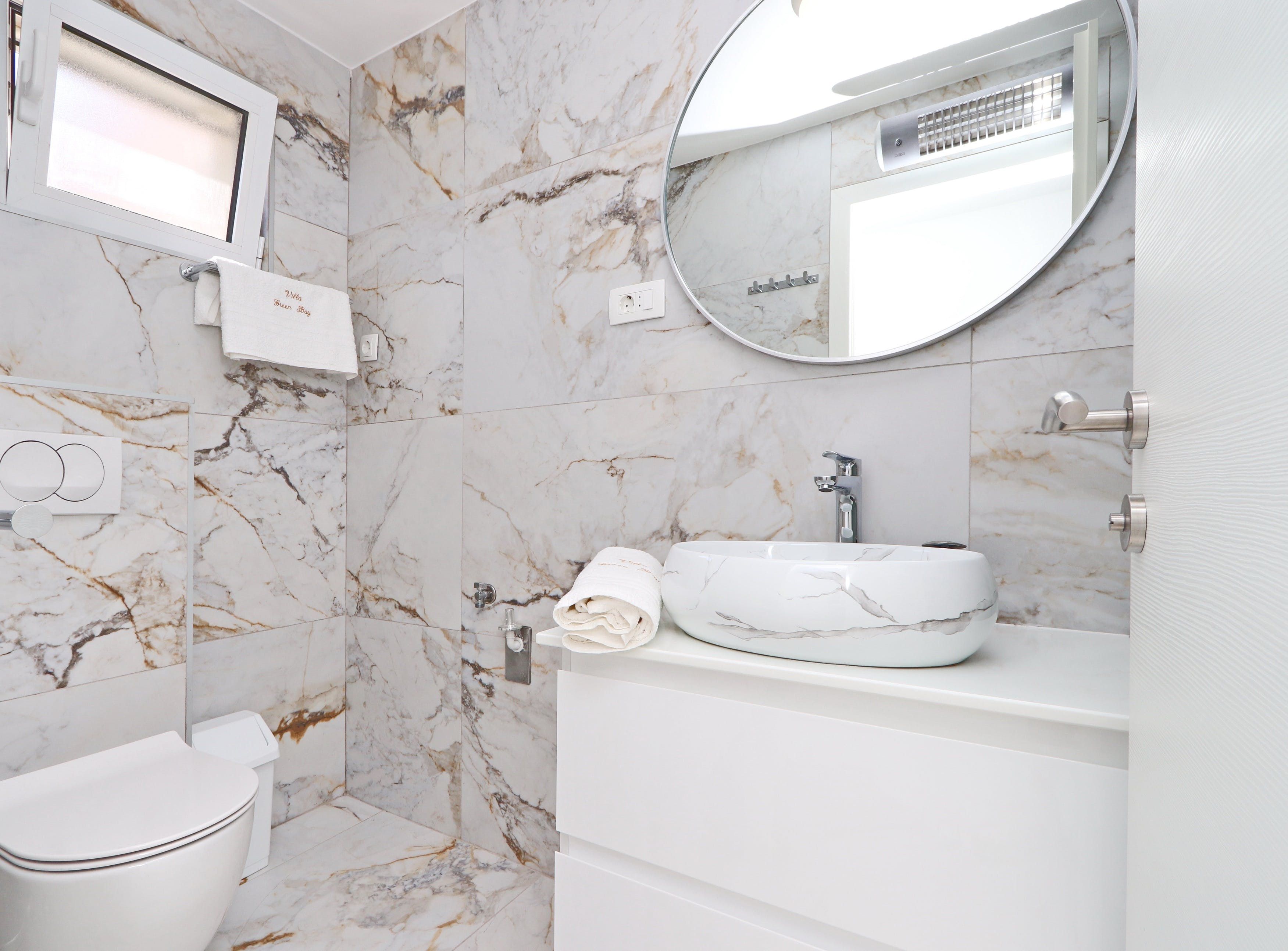 In the second building there are two further apartments with a total area of 55 sqm. Each apartment has one double bedroom (with king size bed – 180cm x 200cm) with ensuite bathroom (with shower) and one double bedroom (with double bed – 160cm x 190cm) with ensuite bathroom (with shower).
