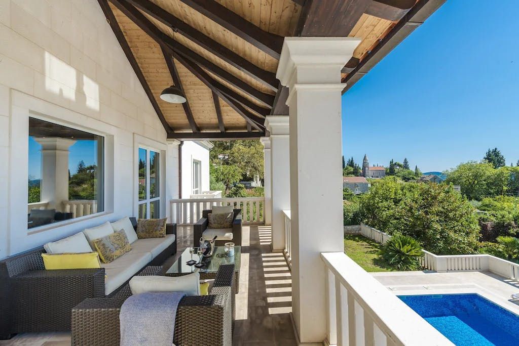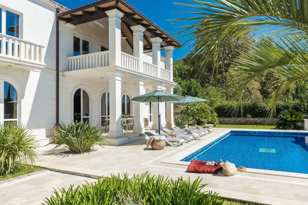 Glamour is the name of the game at this imposing villa in the pretty seaside village of Trsteno. Just a short drive from Dubrovnik, it's a sensational, Renaissance-style villa on the slopes above the lush Arboretum Trsteno (which stood in for the heavenly gardens of King's Landing when they filmed Game of Thrones in this area). Its far-reaching sea views are made the most of with terraced gardens, a vast pool terrace and a first-floor balcony big enough to fit the whole group for sundowners.