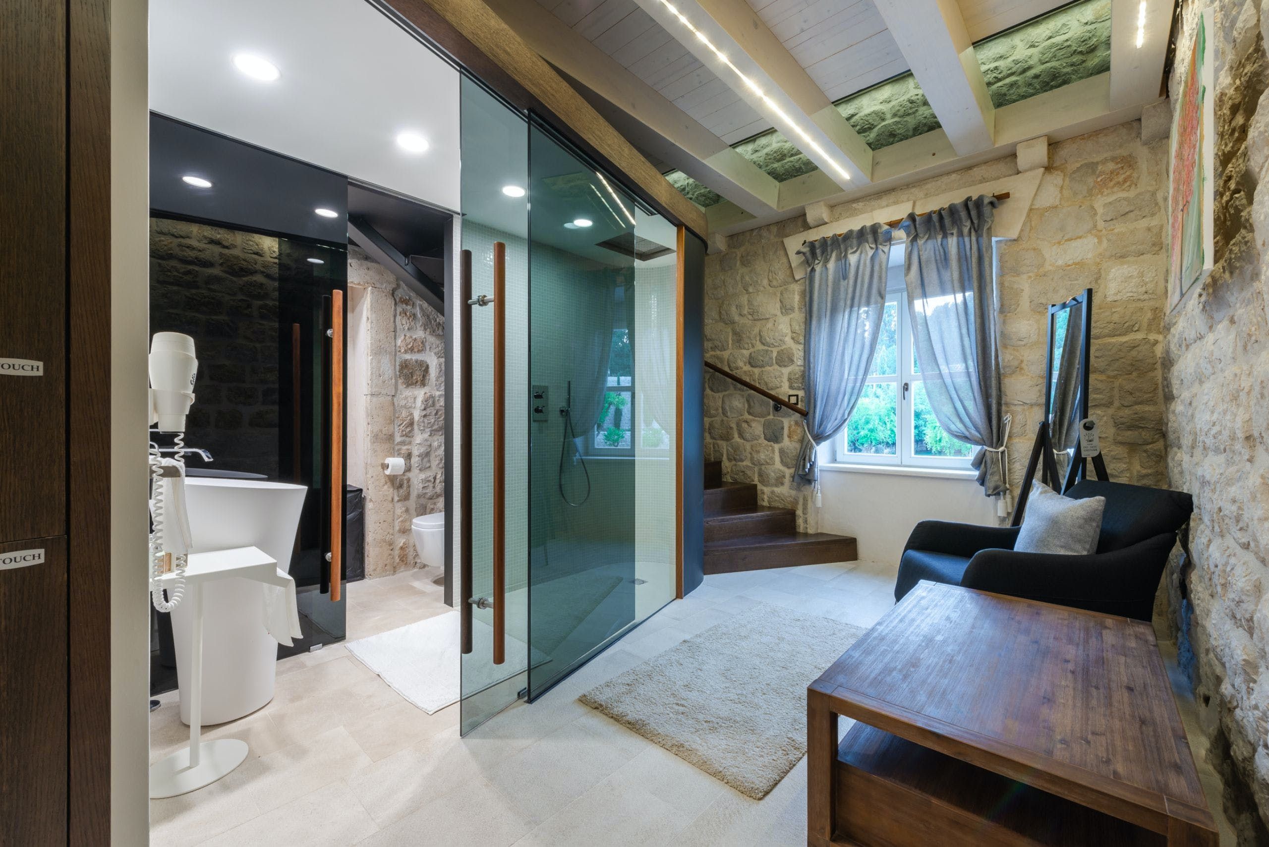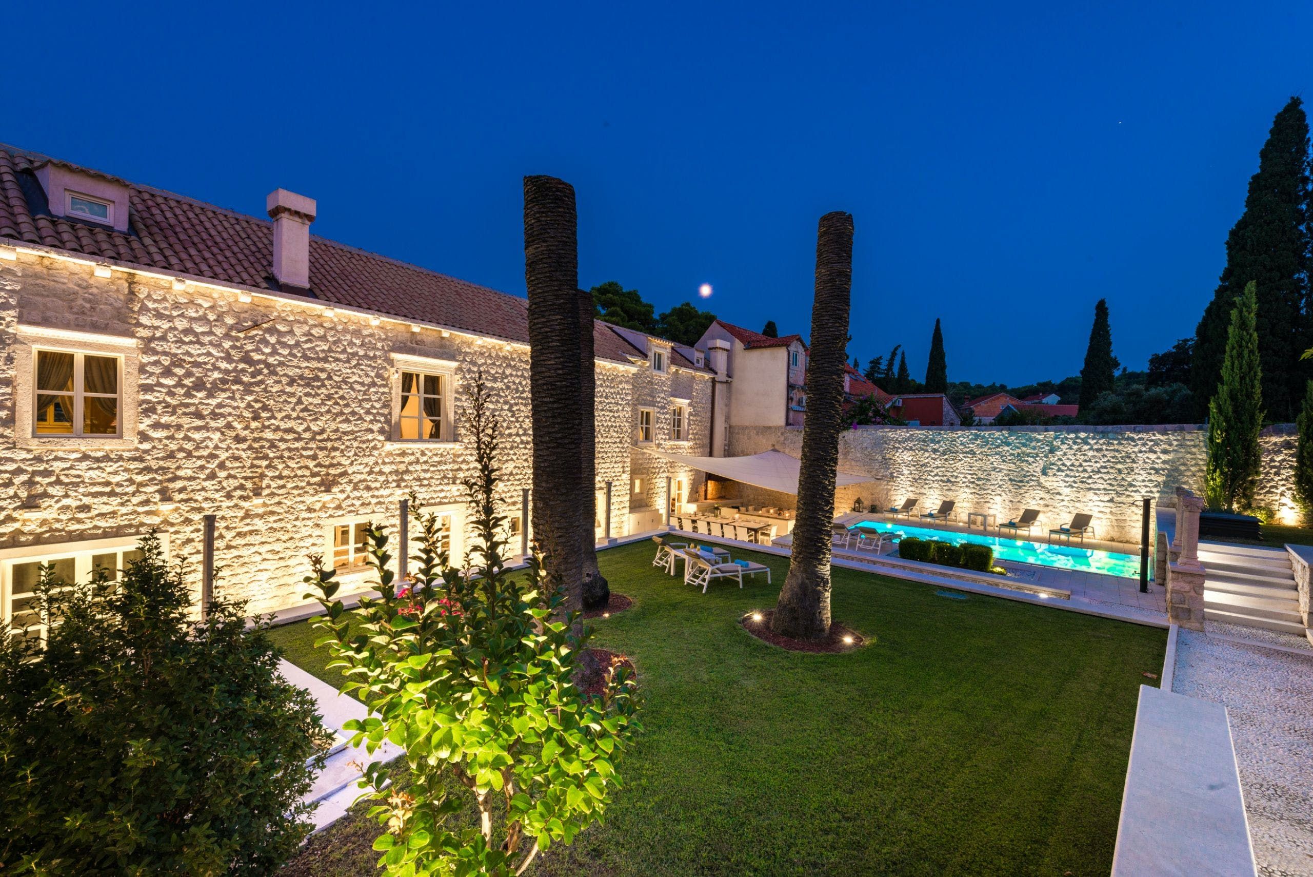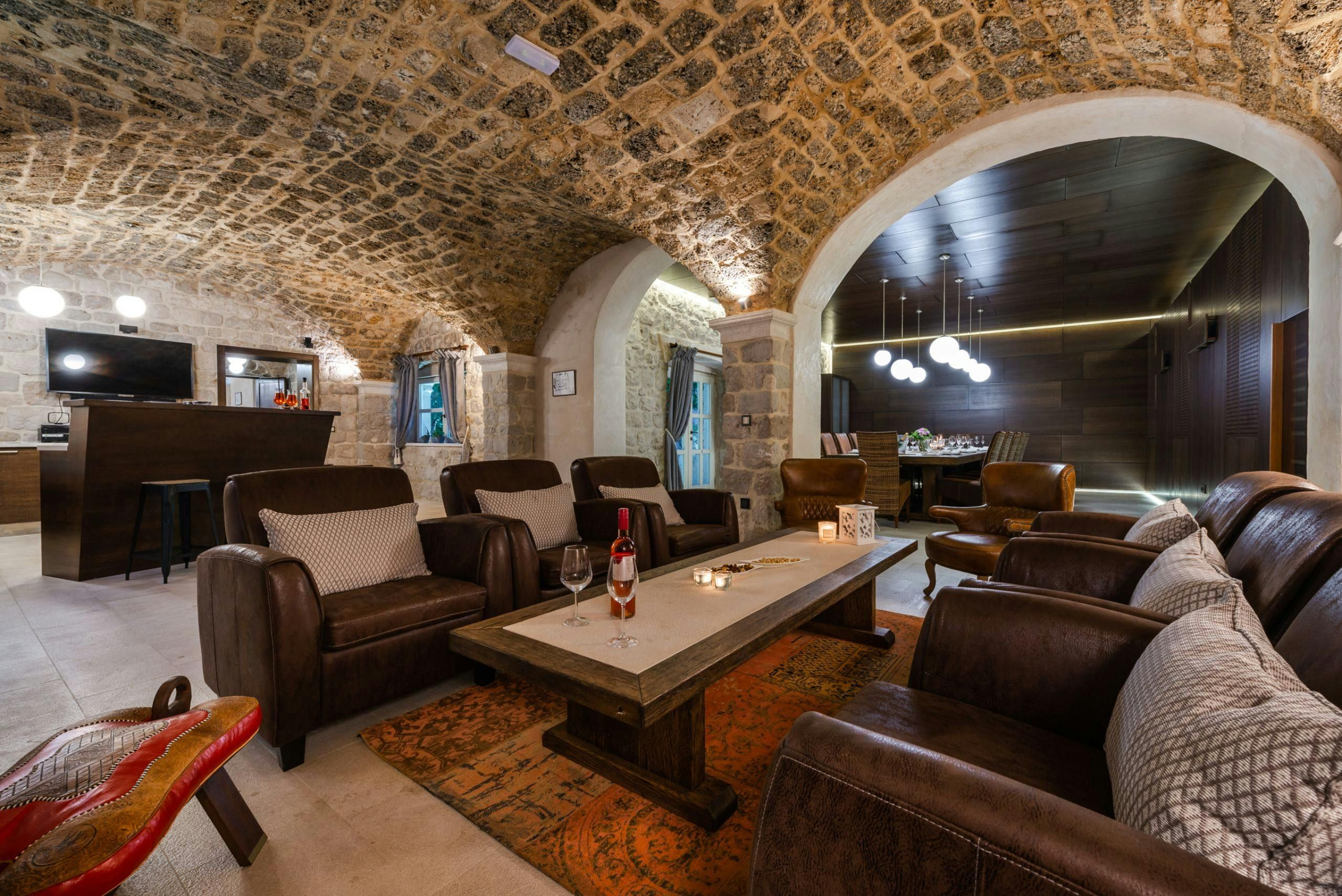 Imagine a serene haven effortlessly blending the Dalmatians' endearing hospitality and Dubrovnik's unique medieval charm. This lovely waterfront property tickles the senses with large outdoor spaces that summon convivial moments under the sun and beneath the twinkling stars. A breathtaking glass bridge connects your experience to a higher terrace, where time slows down in the embrace of an intimate relaxation area. Blooming in its rear is a terraced Mediterranean garden, home to lush lawns, an inviting swimming pool, and a dreamy lounge nook hidden beneath cooling shade. The garden's herb corner offers you a touch of local cuisine's vibrant flavours right at your fingertips. Inside you'll discover sun-filled living areas, four grand bedroom suites across two levels, each nurturing an ambiance of tranquility and opulence, heightened by modern bathrooms with underfloor heating for added comfort.