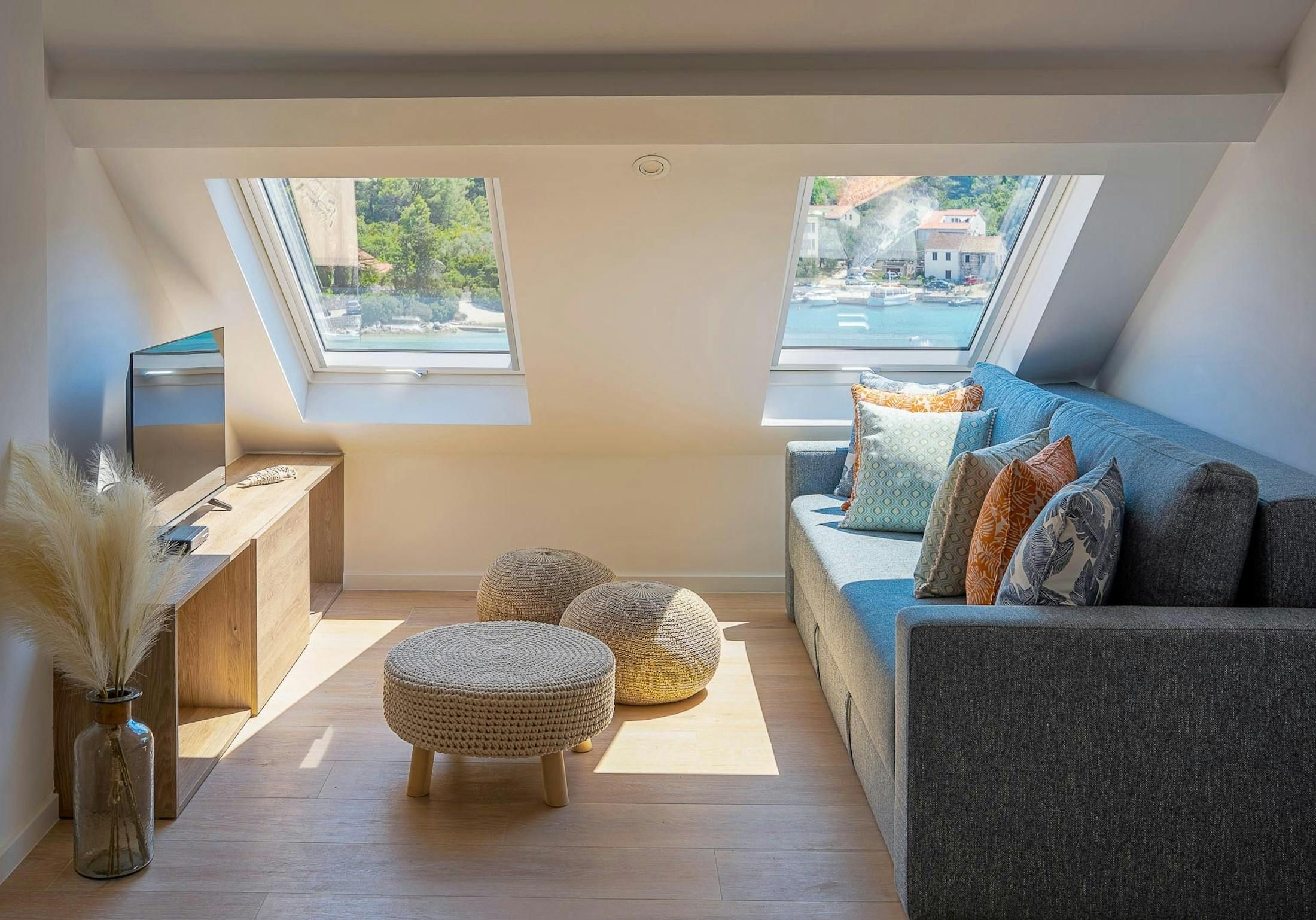There's no escaping the stunning views at this three-storey home in Korčula – not that you'd want to. The three apartments that make up this villa each have their own private terraces where you can lie back on a lounger, dine alfresco, and admire the coastline – it's an ideal layout for large family groups. And when you want to gather together? The elegant infinity pool is the place to hang out, perhaps with a few drinks. With the private dock, your group can arrive in style, and the provided kayaks offer opportunities to explore the beautiful island coastline. Not to mention, Korčula's old town is just a short drive away.