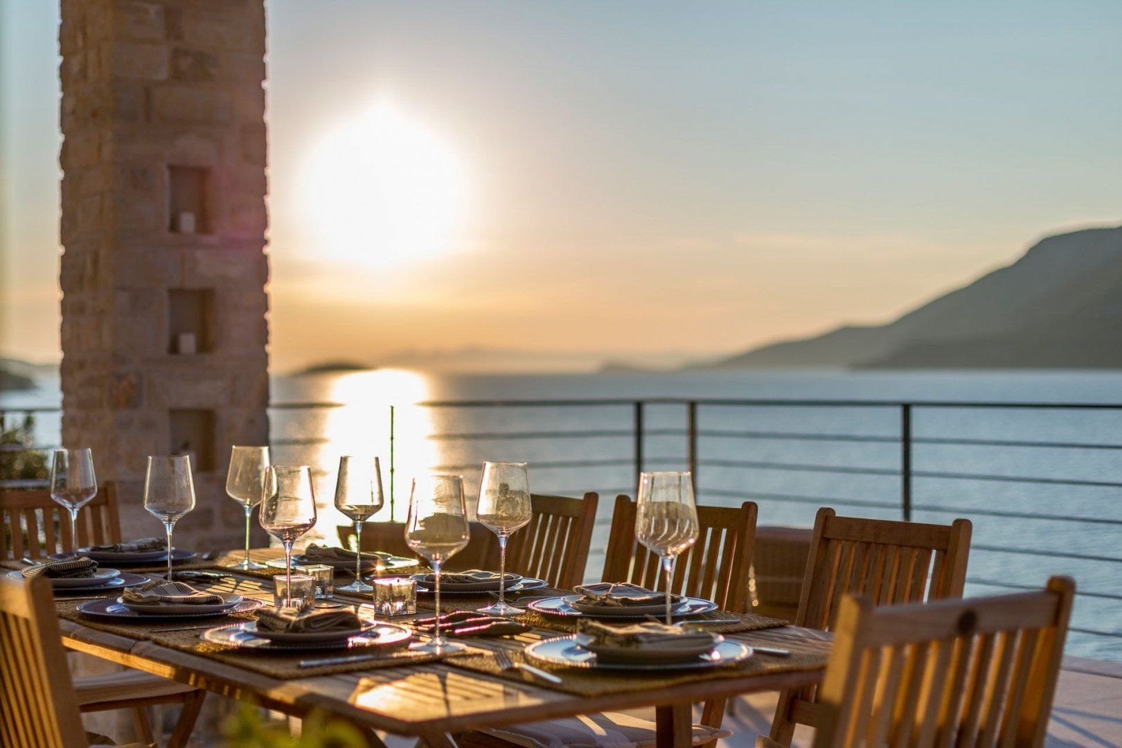 Though you may find all the ambience you're chasing is back at this magnificent villa perched beside the sea's edge. The panoramas are jaw-dropping from the vast terraces and heated infinity pool – especially at sunset with the outdoor fireplace aglow. And should you ever tire of that (doubtful), follow the steps leading down to a private beach plateau with a sun deck and mooring (just ten metres away) – it's the perfect excuse to charter your own boat.