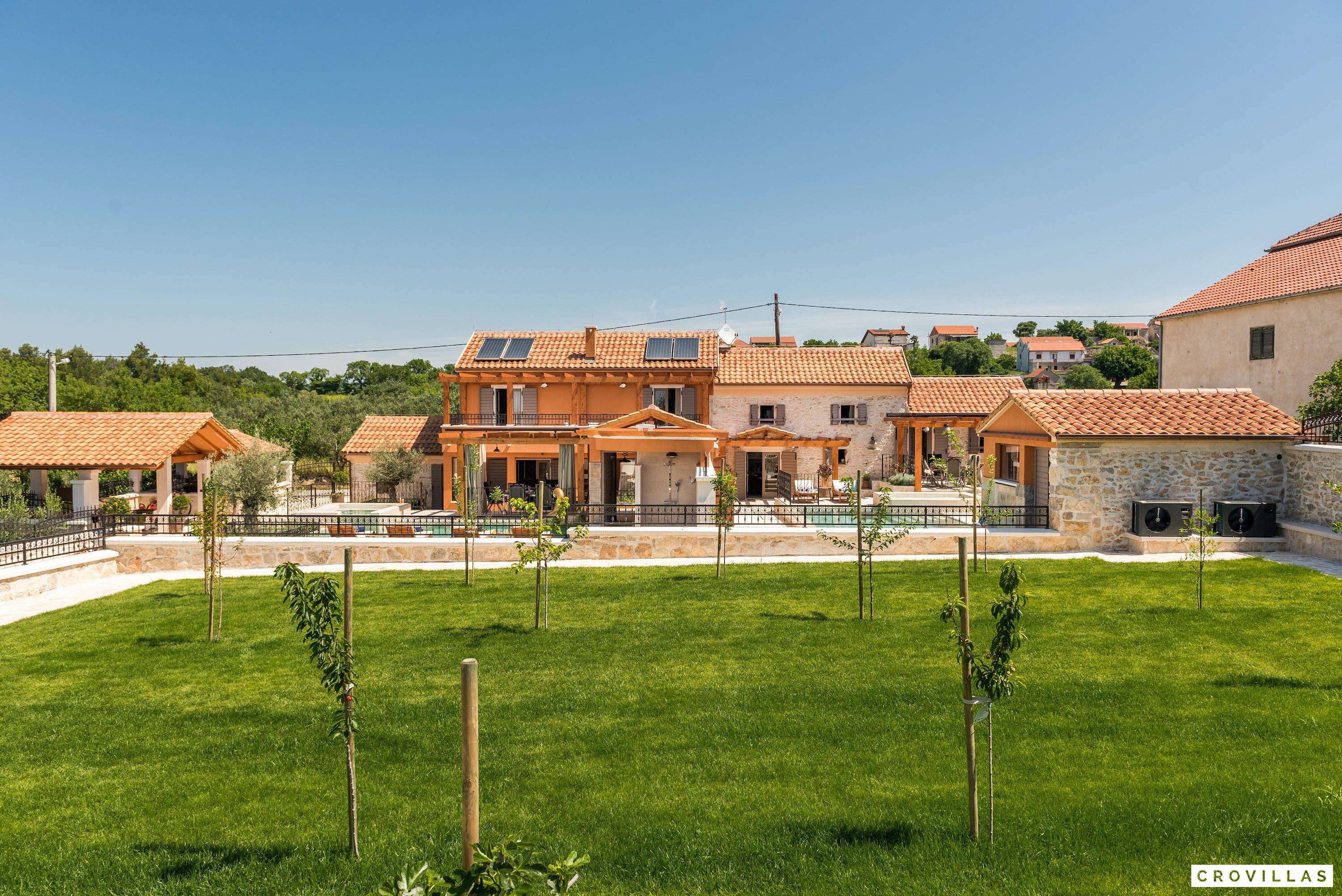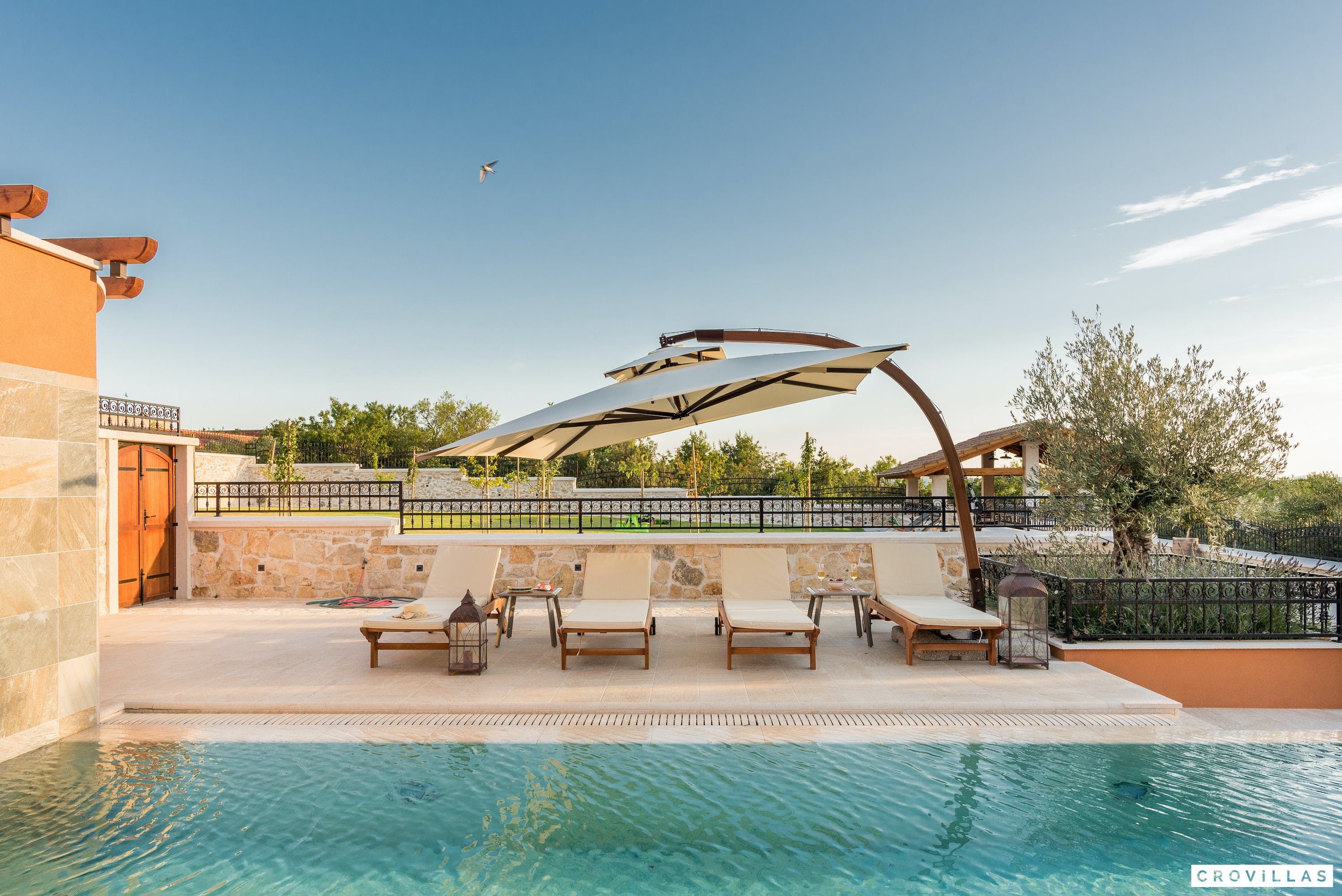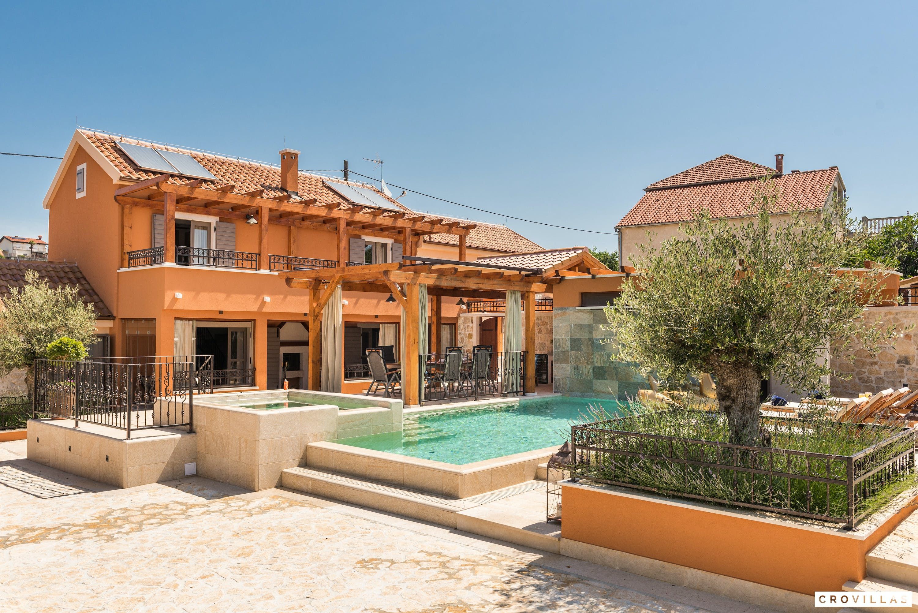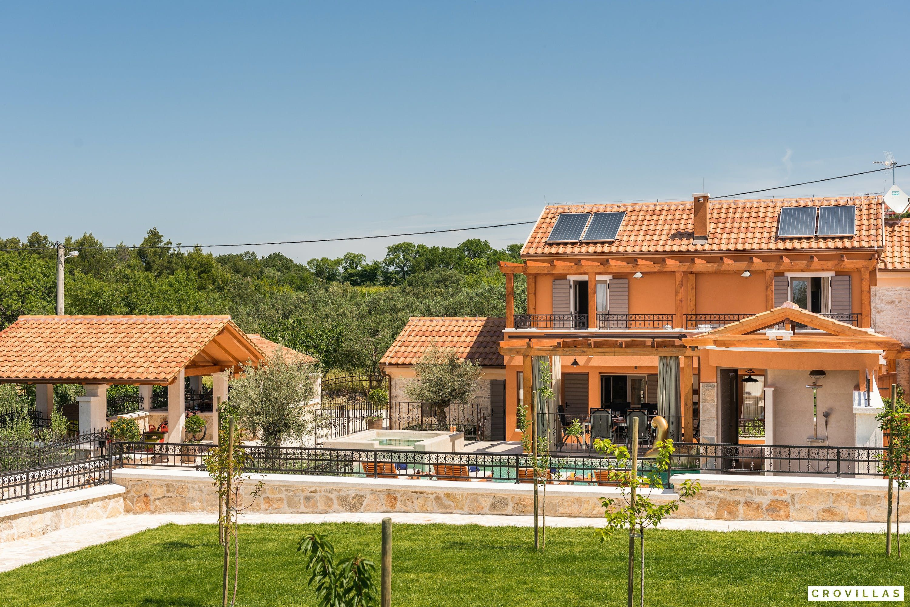 This stunning vacation rental is perfect for families or groups of friends seeking a luxurious retreat that offers both privacy and plenty of space to spread out. The home consists of two beautiful semi-detached villas, each with five double bedrooms and en-suite bathrooms equipped with either showers or bathtubs. The stylishly decorated interior boasts light walls and floors, natural stone elements, and exposed beam ceilings. Guests can relax together in the open living-dining area, which includes a fully equipped kitchen conveniently integrated into the space. Outside on the fenced grounds, guests can enjoy two heated pools with hydromassage, a Jacuzzi, two saunas (infrared and steam), an outdoor kitchen, a children's playground, table tennis, basketball hoop, bicycles and volleyball net. The location in Croatia is perfect for those looking for a beach holiday with modern amenities.