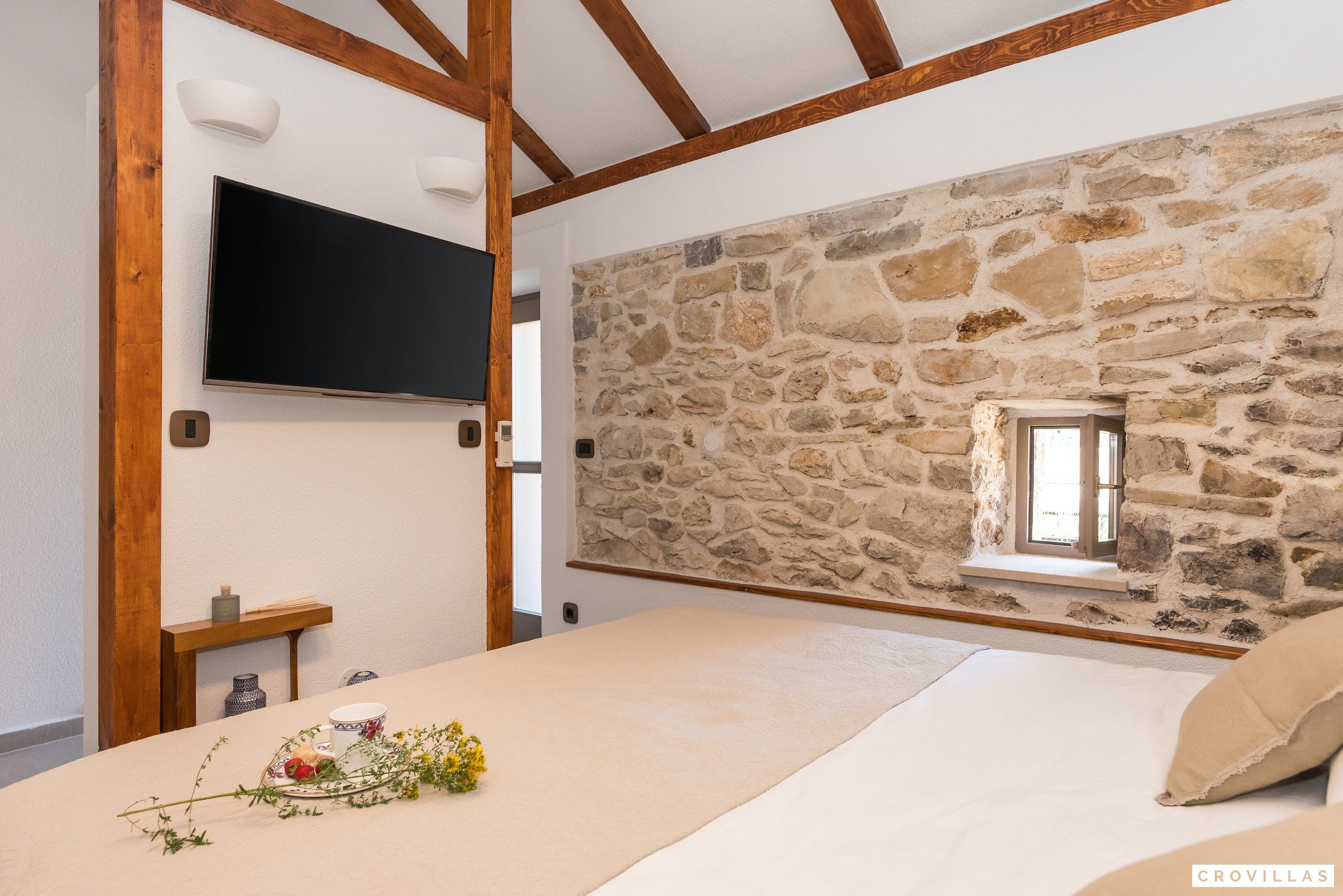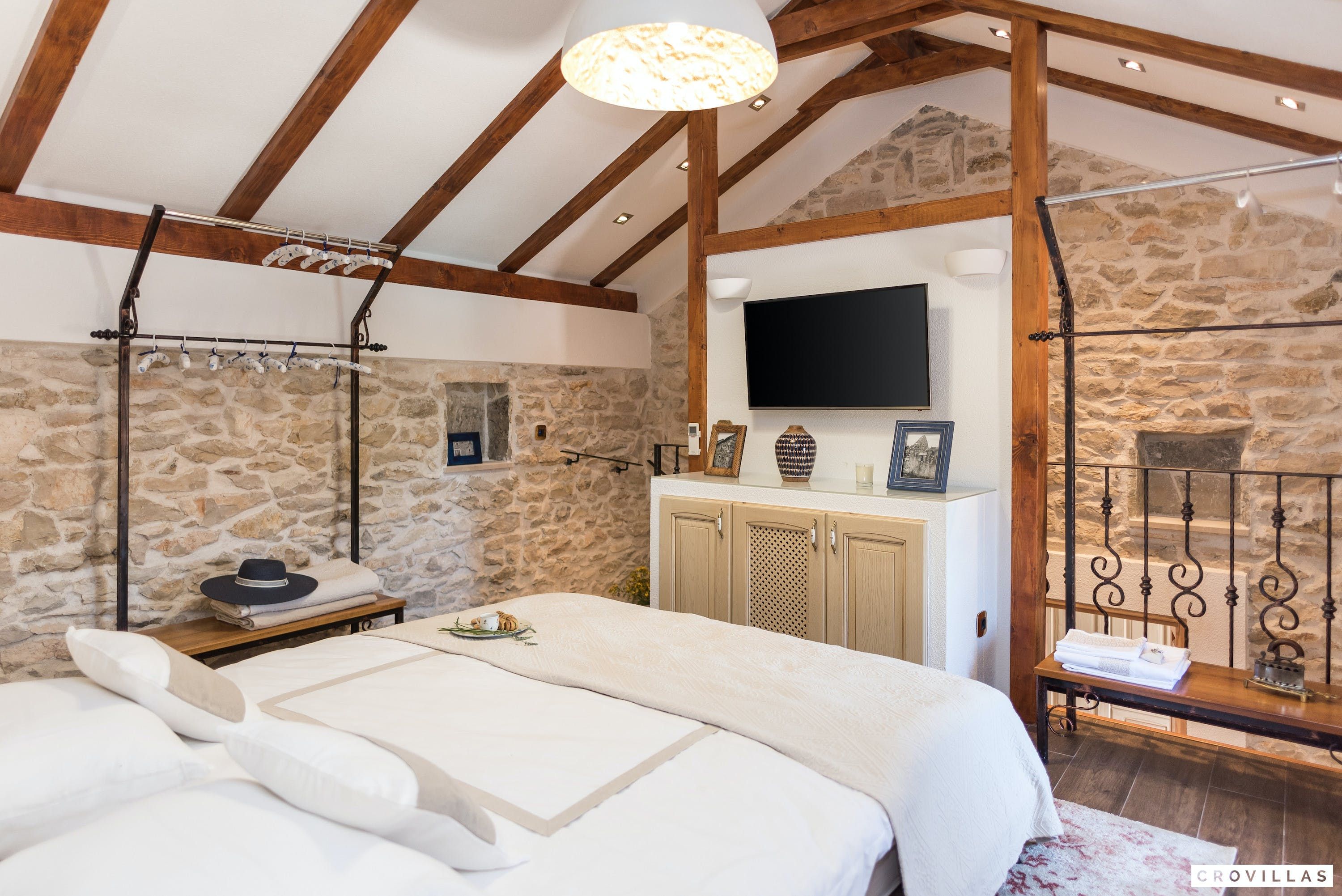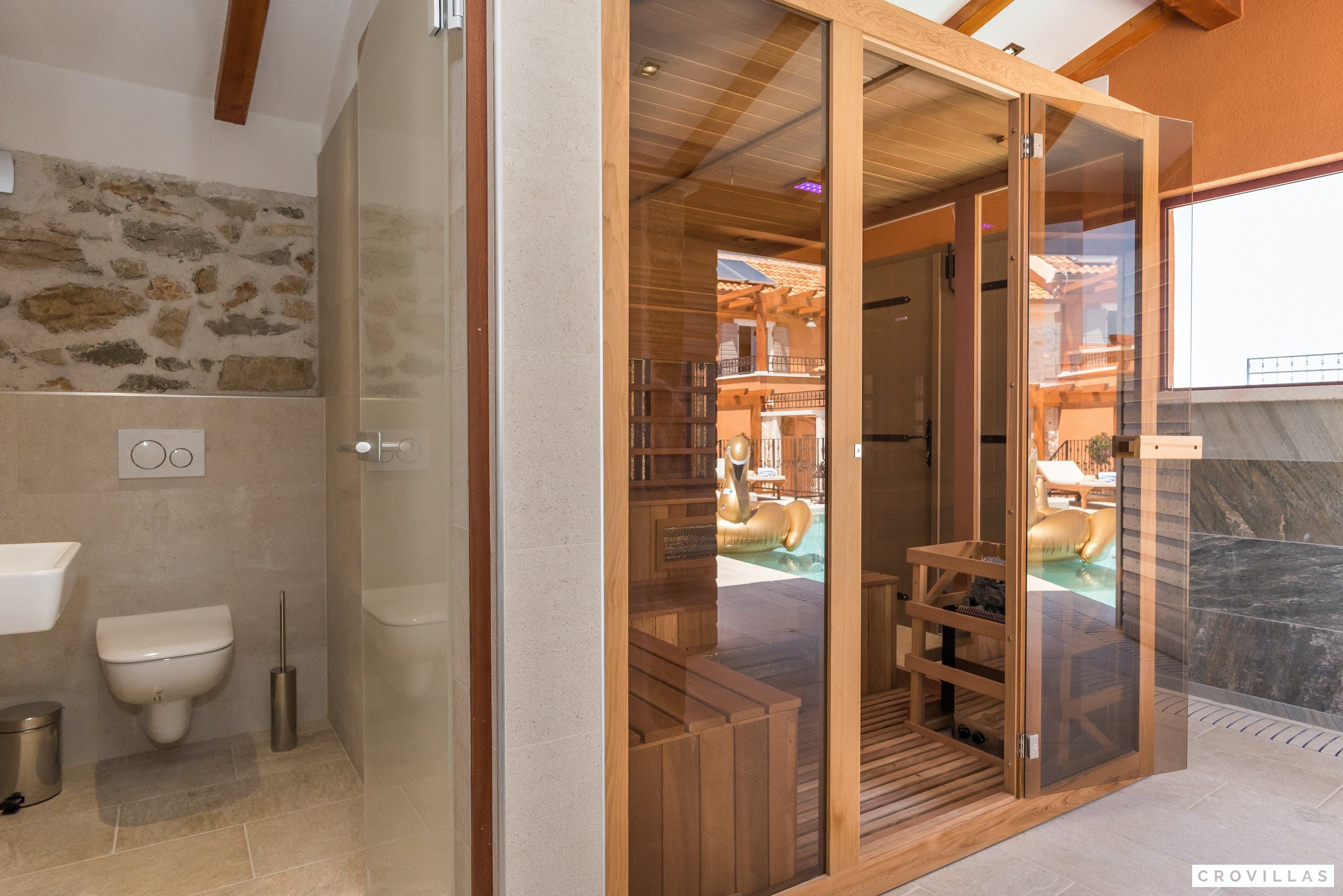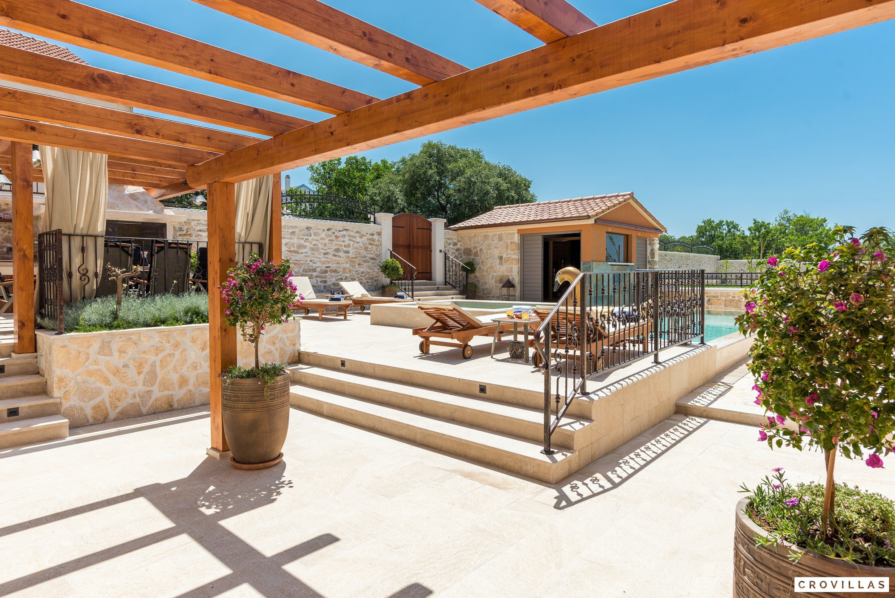 This stunning vacation rental is perfect for families or groups of friends seeking a luxurious retreat that offers both privacy and plenty of space to spread out. The home consists of two beautiful semi-detached villas, each with five double bedrooms and en-suite bathrooms equipped with either showers or bathtubs. The stylishly decorated interior boasts light walls and floors, natural stone elements, and exposed beam ceilings. Guests can relax together in the open living-dining area, which includes a fully equipped kitchen conveniently integrated into the space. Outside on the fenced grounds, guests can enjoy two heated pools with hydromassage, a Jacuzzi, two saunas (infrared and steam), an outdoor kitchen, a children's playground, table tennis, basketball hoop, bicycles and volleyball net. The location in Croatia is perfect for those looking for a beach holiday with modern amenities.