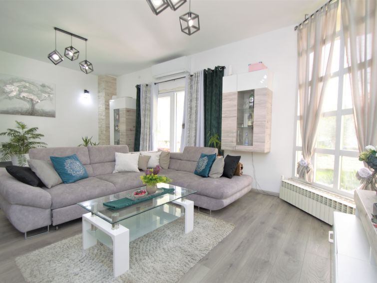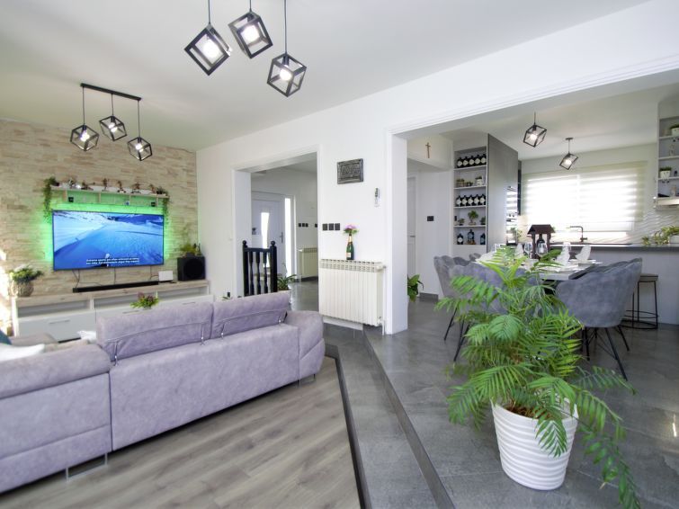 4-room semi-detached house 170 m2 on 2 levels, south facing position. Living/dining room 40 m2 with satellite TV (flat screen), air conditioning. Exit to the terrace. Open kitchen (oven, dishwasher, 4 ceramic glass hob hotplates, toaster, kettle, microwave, freezer, electric coffee machine).
