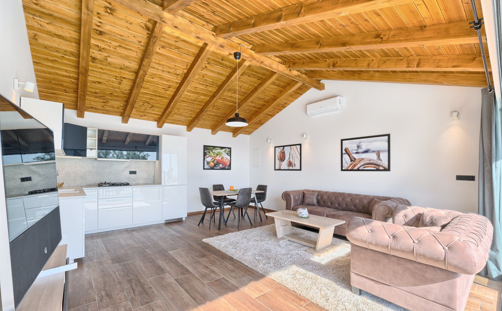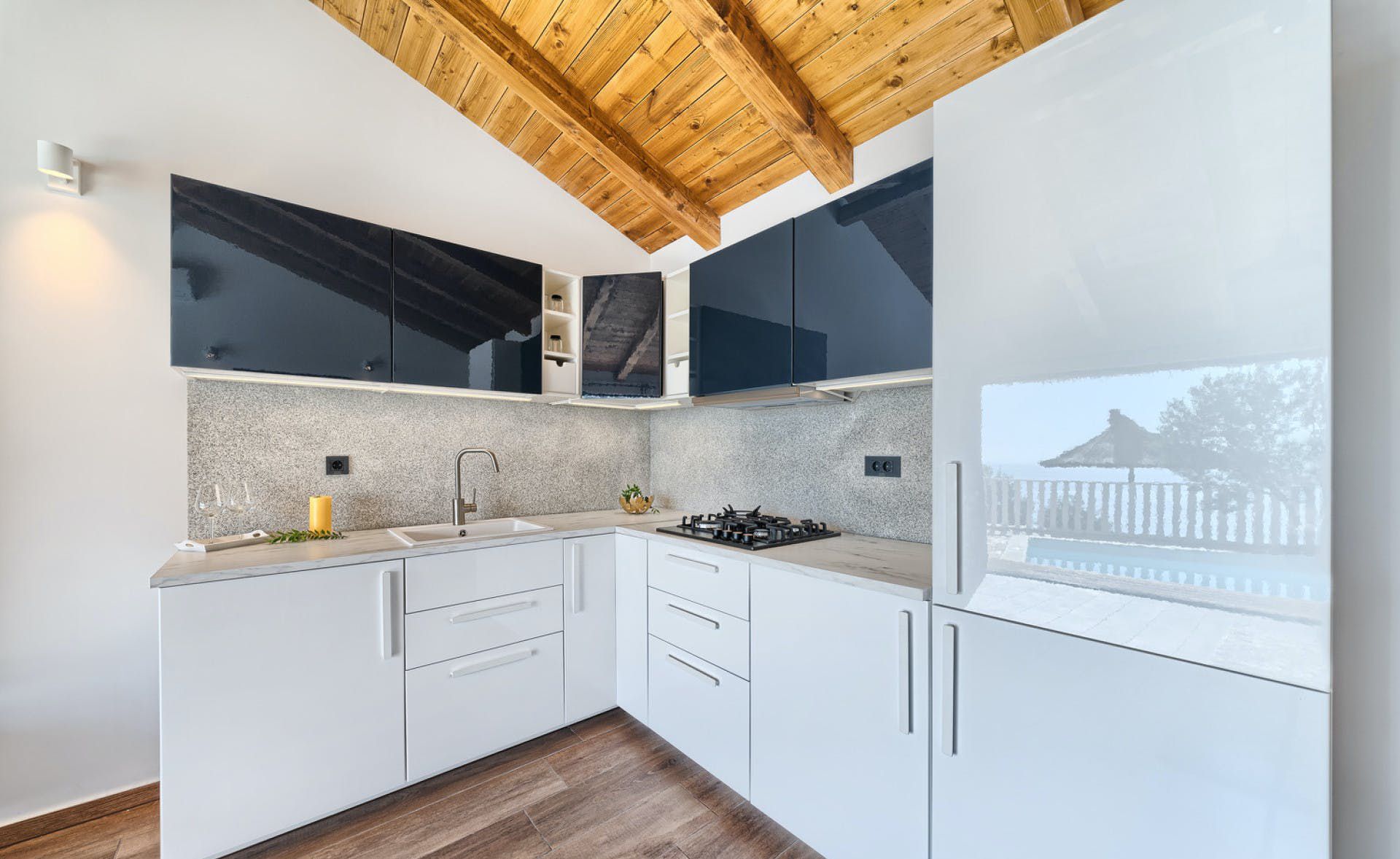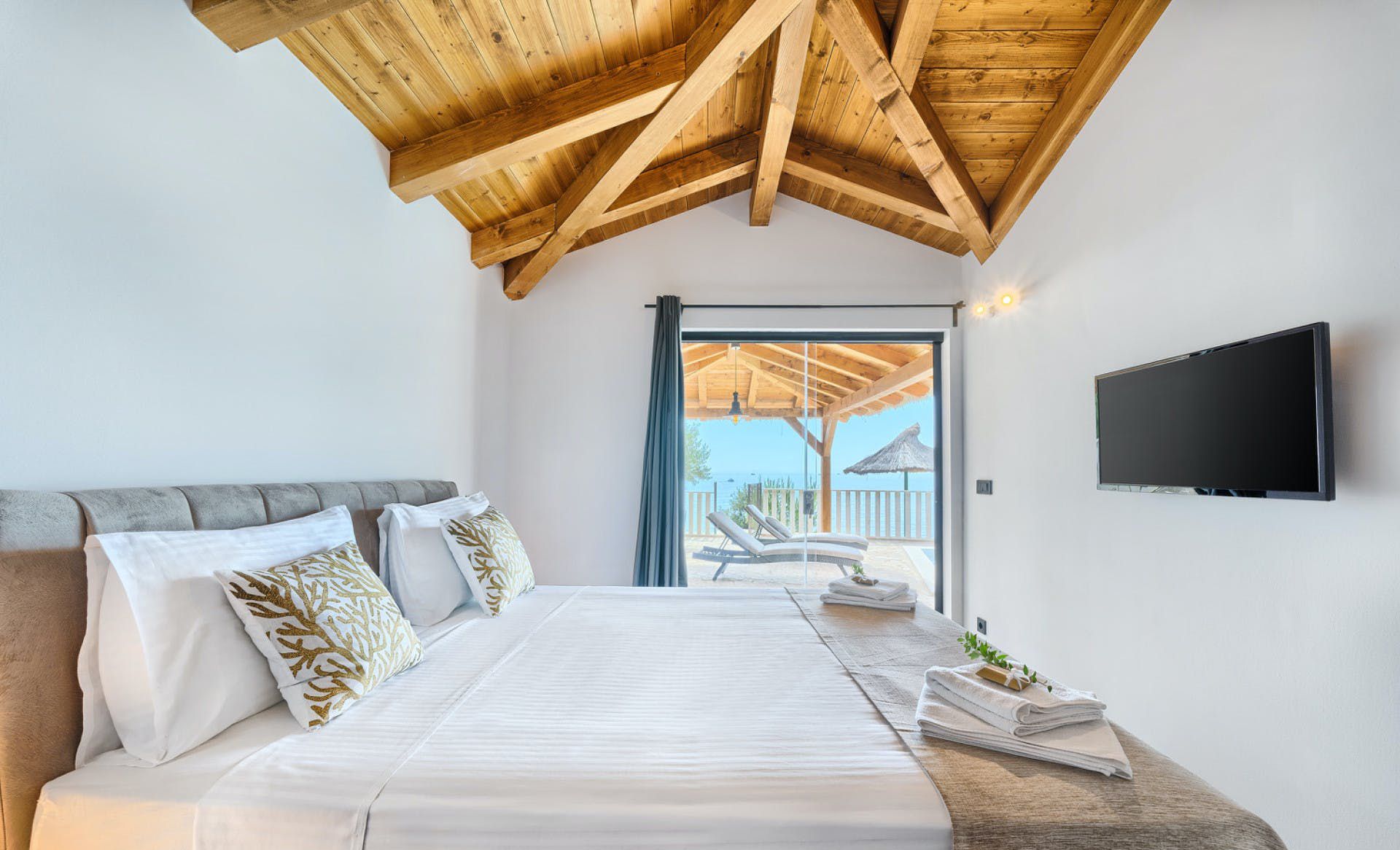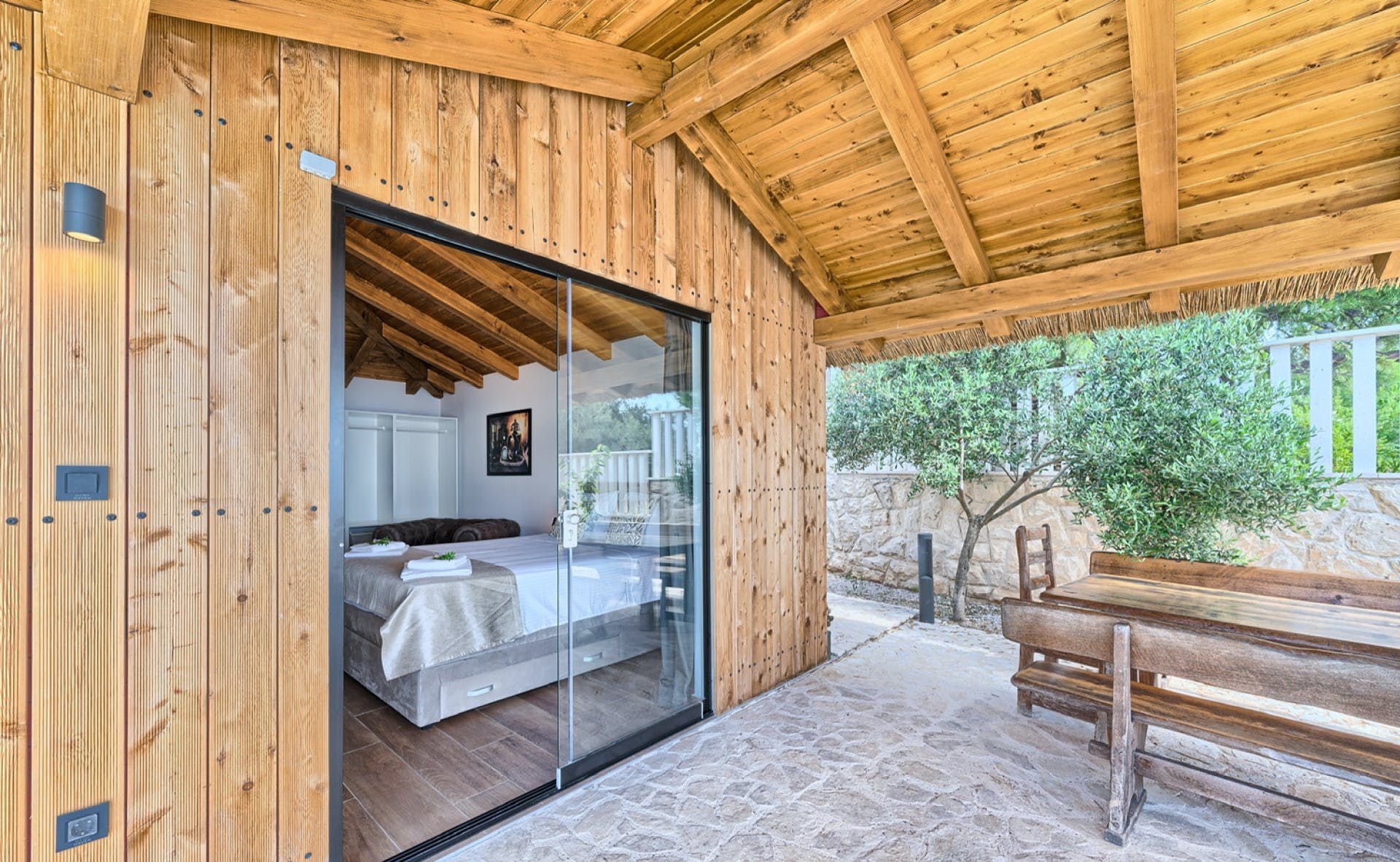 With fantastic views of the Adriatic Sea, this villa has a great location on the island of Murter in Northern Dalmatia. You can enjoy the vistas from the private pool and terrace, and there’s access to a tennis court here, too. We particularly love the open-plan living room with its large sliding doors, making the most of the panorama beyond. Just one thing to mention. The kitchen has no oven or microwave, but there’s a hob and there’s a restaurant 10 metres away. Which brings us onto the setting – it’s a highlight for sure. There’s a beach 10 metres away, and there are countless other bays to discover.