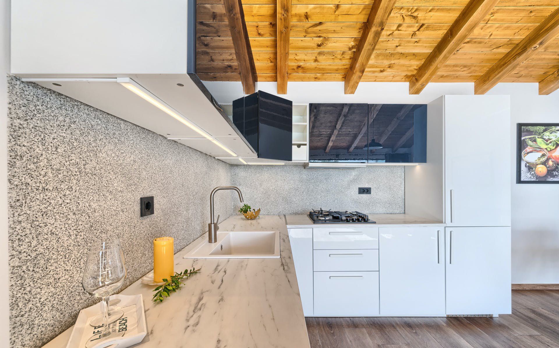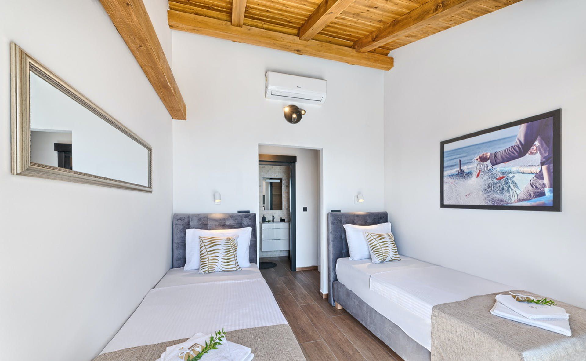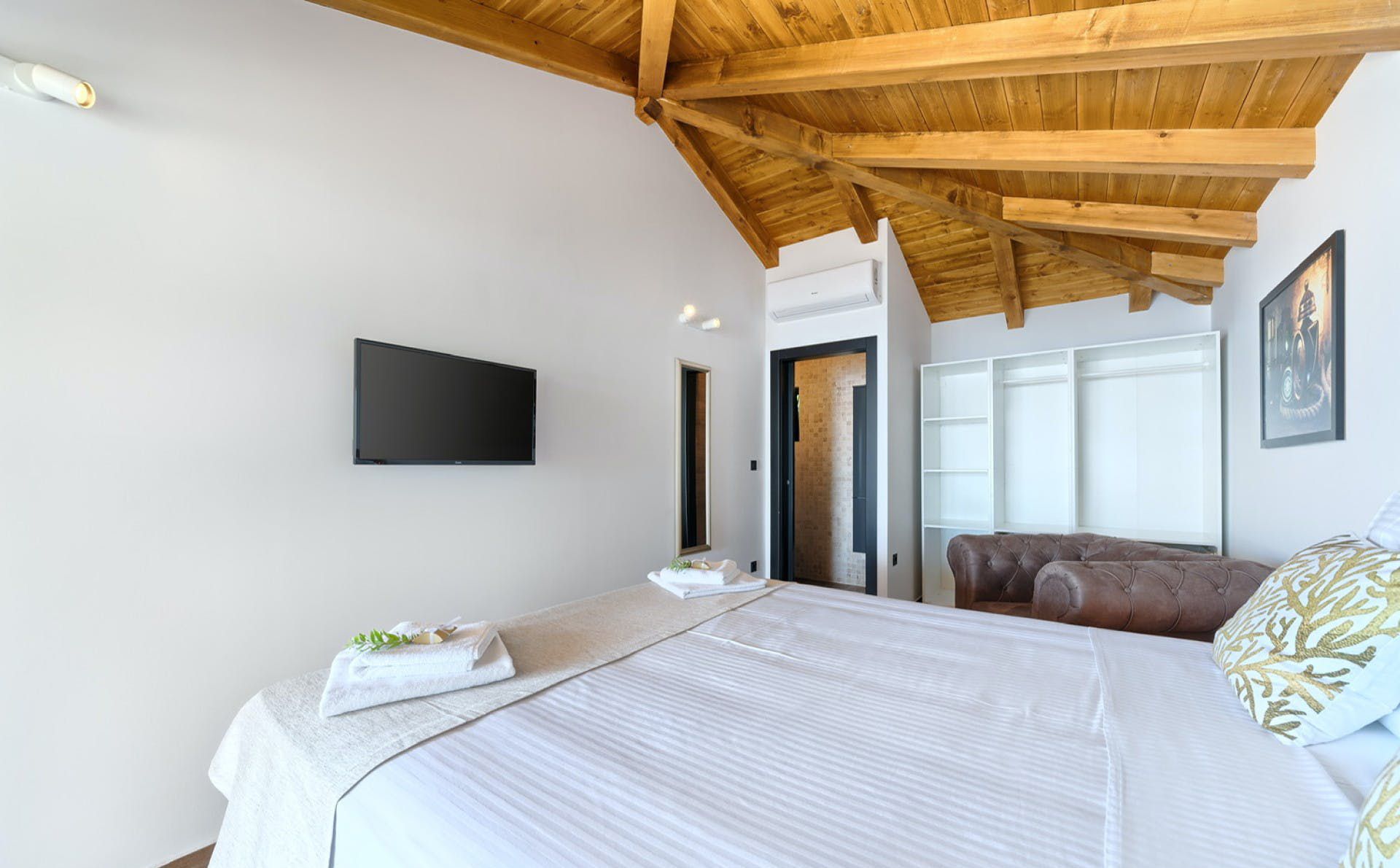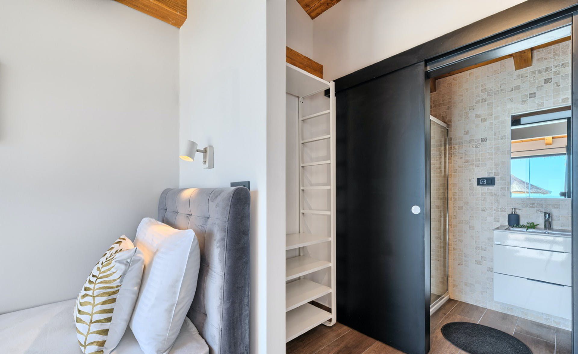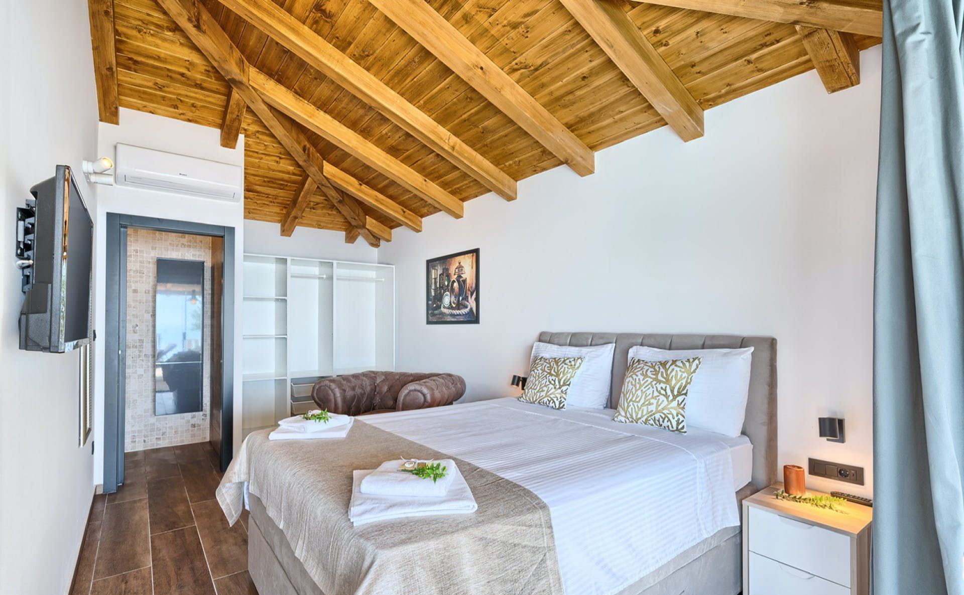 With fantastic views of the Adriatic Sea, this villa has a great location on the island of Murter in Northern Dalmatia. You can enjoy the vistas from the private pool and terrace, and there’s access to a tennis court here, too. We particularly love the open-plan living room with its large sliding doors, making the most of the panorama beyond. Just one thing to mention. The kitchen has no oven or microwave, but there’s a hob and there’s a restaurant 10 metres away. Which brings us onto the setting – it’s a highlight for sure. There’s a beach 10 metres away, and there are countless other bays to discover.