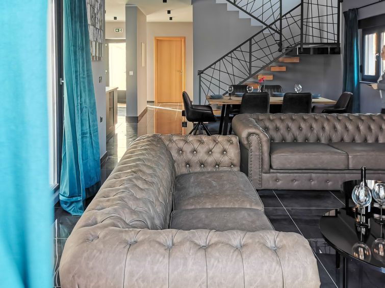 4-room villa 184 m2 on 2 levels, south-west facing position. Luxurious furnishings: living/dining room 60 m2 with satellite TV (flat screen), air conditioning. Exit to the terrace. 1 room with 1 french bed (180 cm, length 200 cm), shower/WC and satellite TV (flat screen), air conditioning.