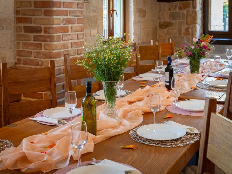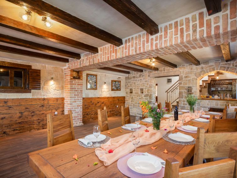 8-room house 370 m2 on 2 levels, south-west facing position. Comfortable furnishings: living/dining room 30 m2 with kitchen corner and satellite TV (flat screen), air conditioning. Exit to the terrace. 1 room with 1 french bed (180 cm, length 200 cm), air conditioning. Kitchen (oven, dishwasher, 4 ceramic glass hob hotplates, kettle, microwave, freezer, electric coffee machine).