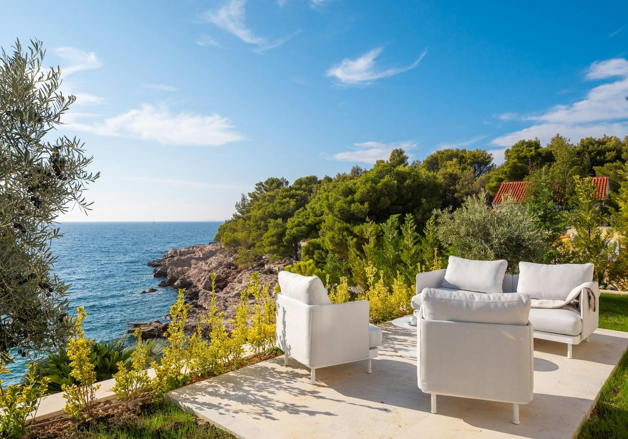 Bask in panoramic Adriatic views from every floor of this stunning contemporary villa. The glass-fronted living space makes the most of the location with sliding doors to the terrace, where you can perch on a comfy sofa with a cool drink or take a dip in the infinity pool. It's easy enough to spend all day – especially with the outdoor kitchen – but leave time for a trip to the sauna and wine tasting in the private cellar. From the garden, you can step out onto a seafront promenade – perfect for picturesque walks around the coastline to secluded beaches and coves. However, we recommend a visit to historic Primošten – it's just a ten-minute drive away..