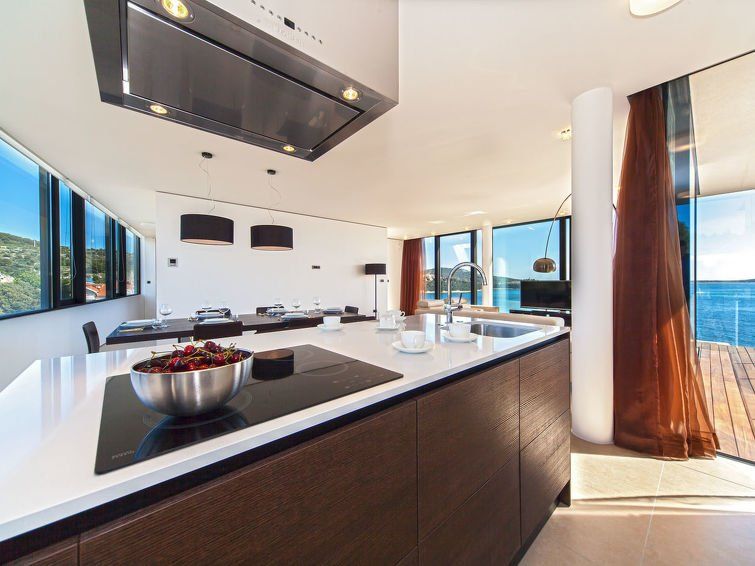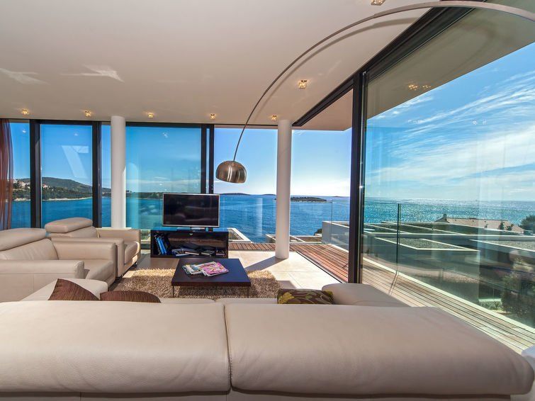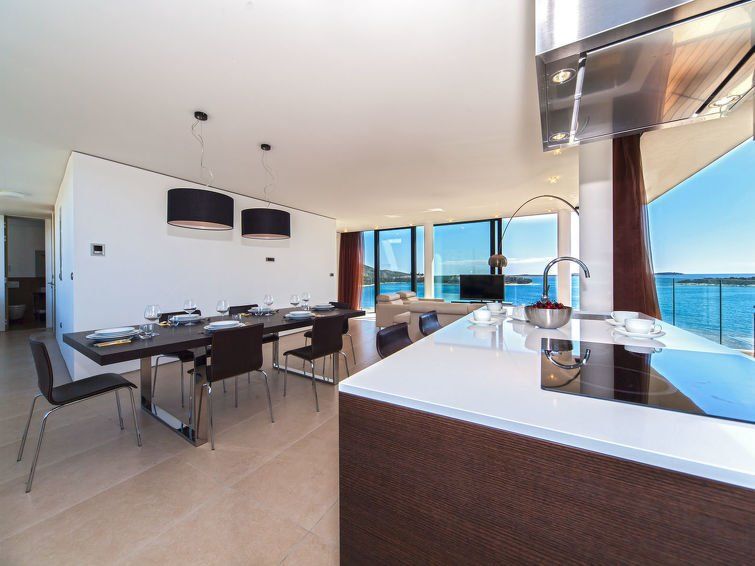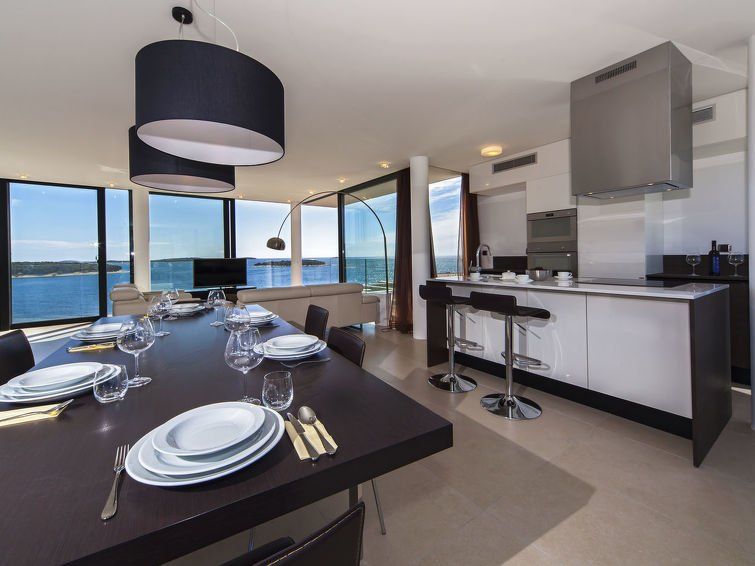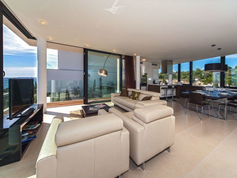 3-room apartment 117 m2 on 1st floor. Living/dining room 33 m2 with satellite TV (flat screen). Exit to the balcony. 1 room with 1 double bed (2 x 90 cm, length 200 cm), satellite TV (flat screen). Exit to the balcony. 1 room with 2 beds (90 cm, length 200 cm), satellite TV (flat screen).