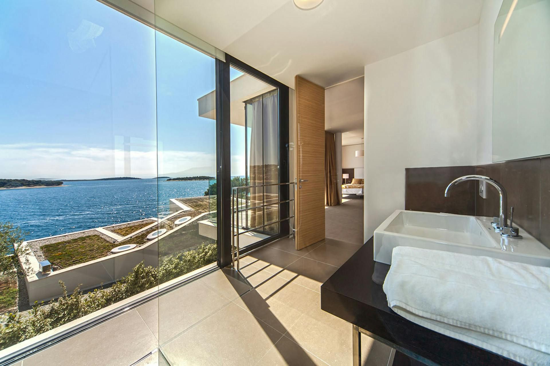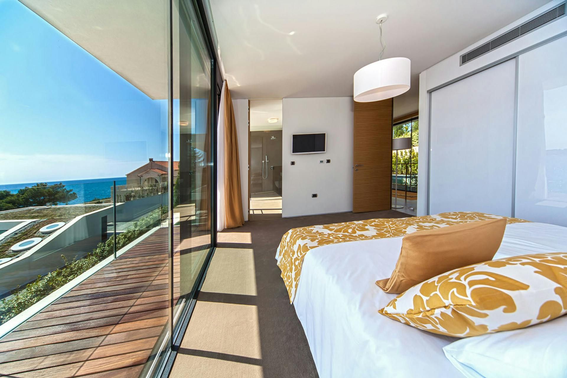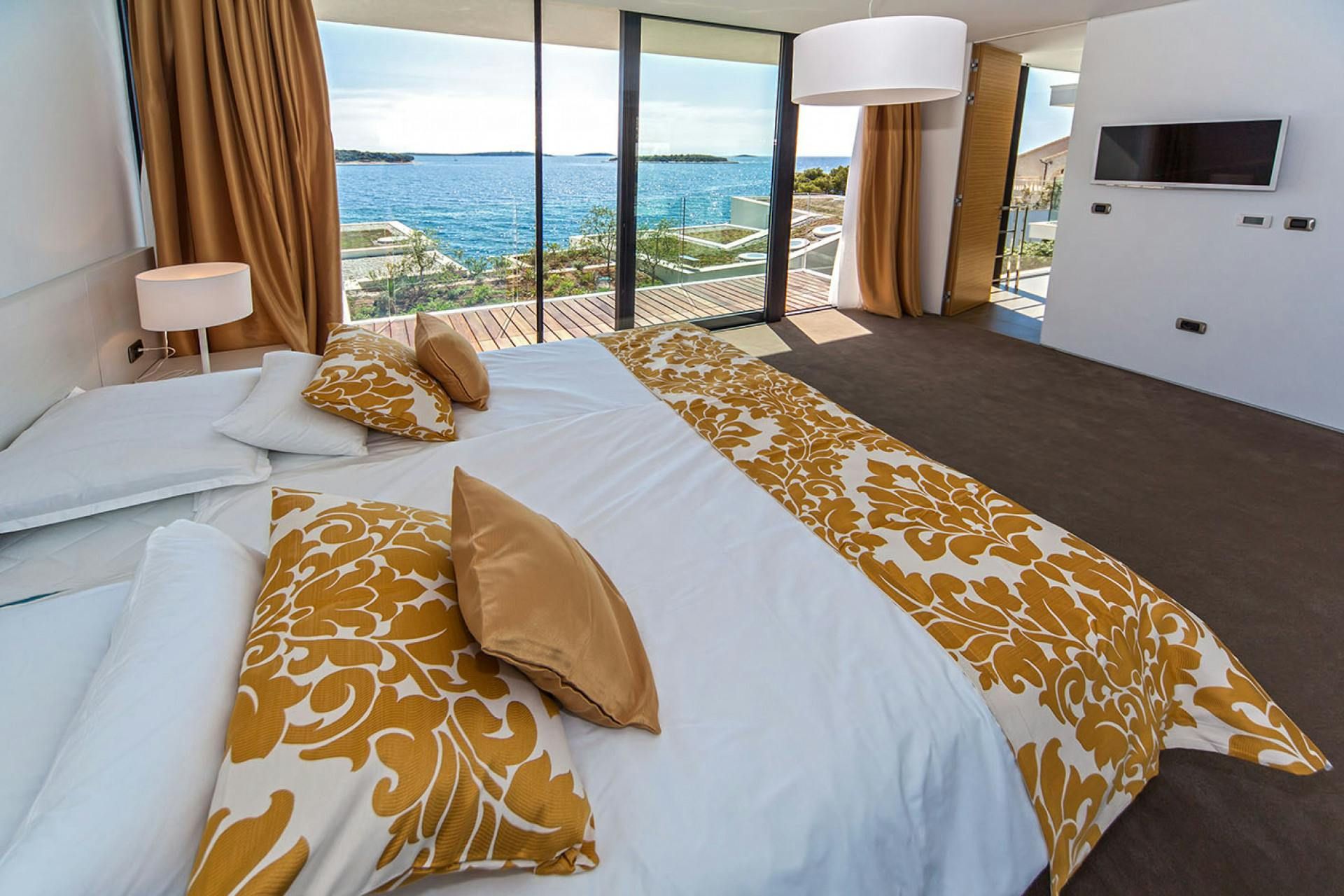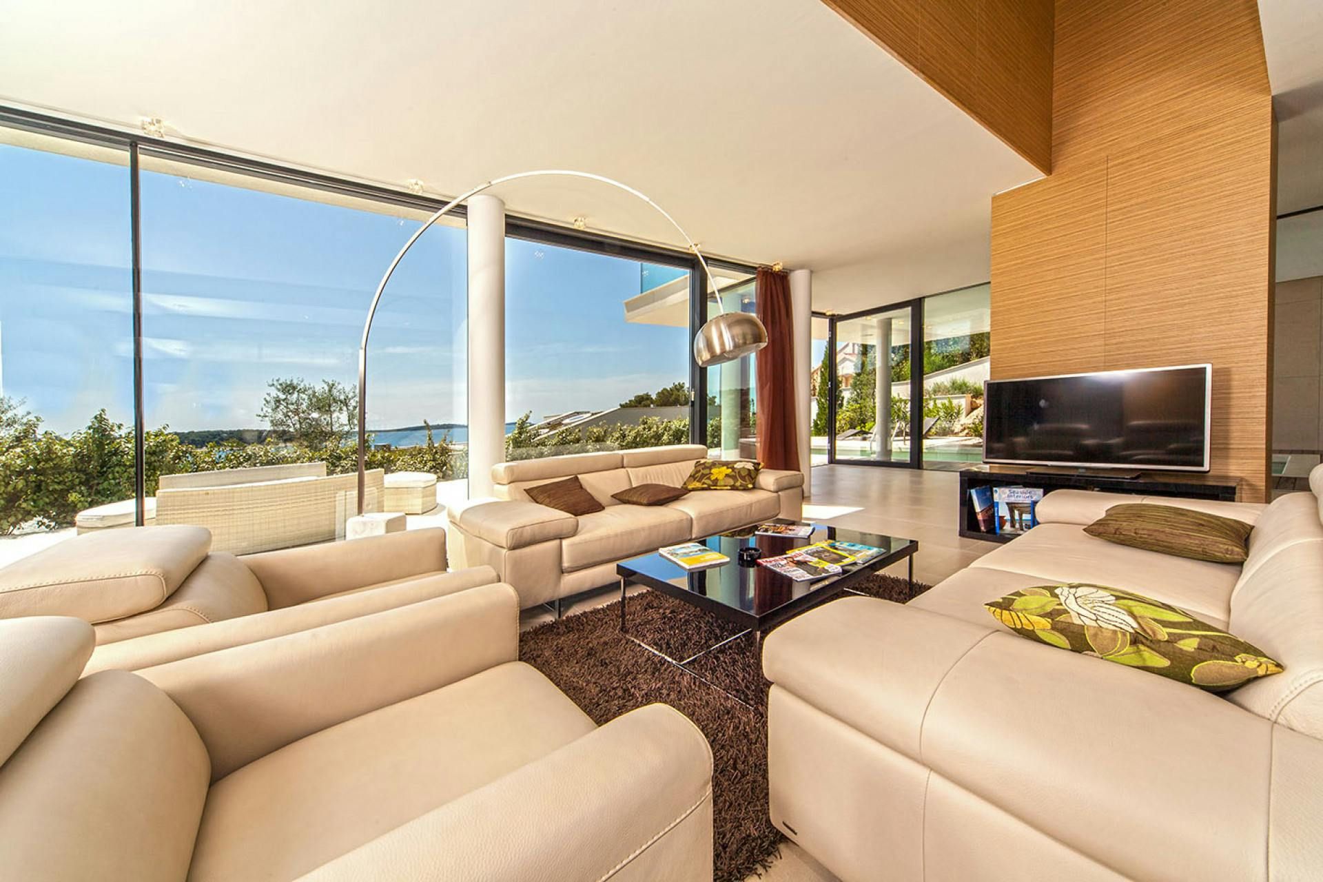 This modern architectural gem has wonderful views of the Adriatic Sea from its pool terrace and balconies. Imagine the sunsets here, and you can enjoy the vistas from inside this home as well. Perfect for families or friends, there are two living areas (one on a mezzanine) and plenty of space to relax. Another highlight is the location – there’s a pebbly beach just 100 metres away, and the beautiful town of Primošten is 2 kilometres from this villa. Or have a drive over to Šibenik, where you’ll find St. Michael’s Fortress, which has an open-air theatre and the 15th-century Cathedral of St. James.