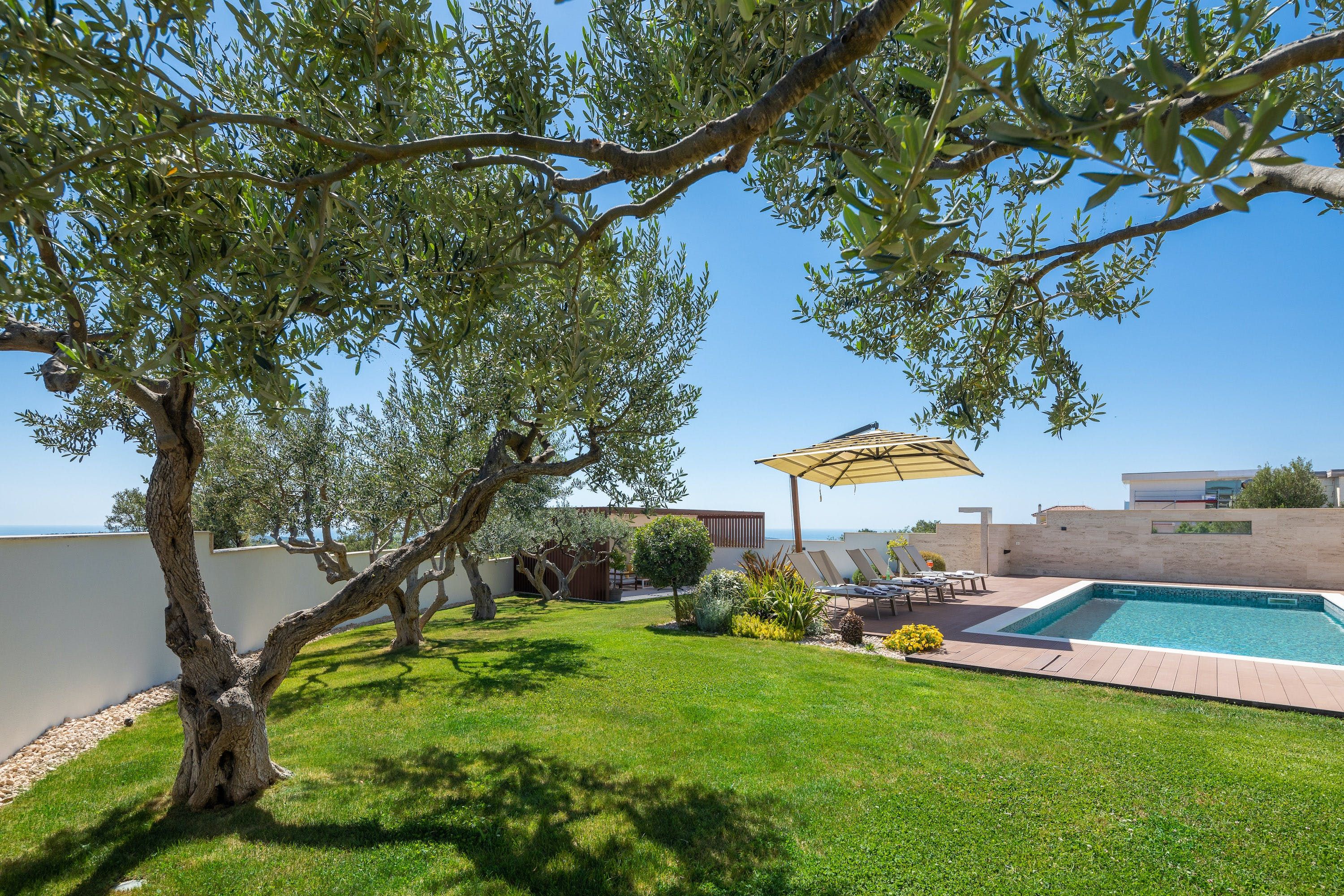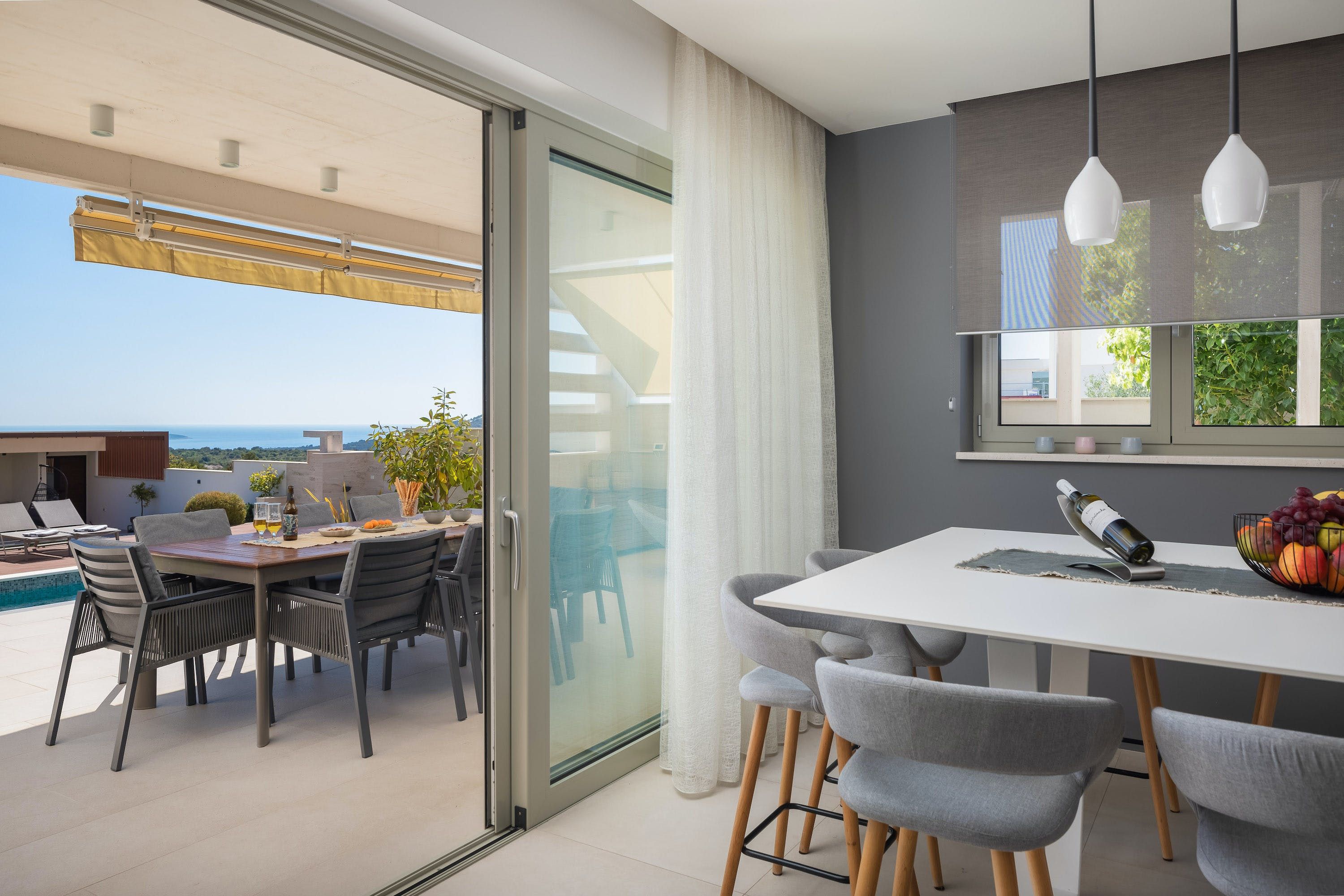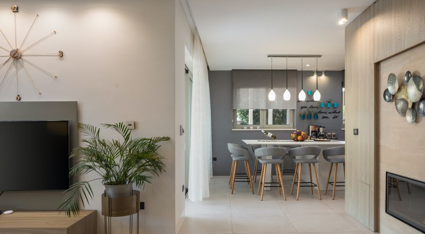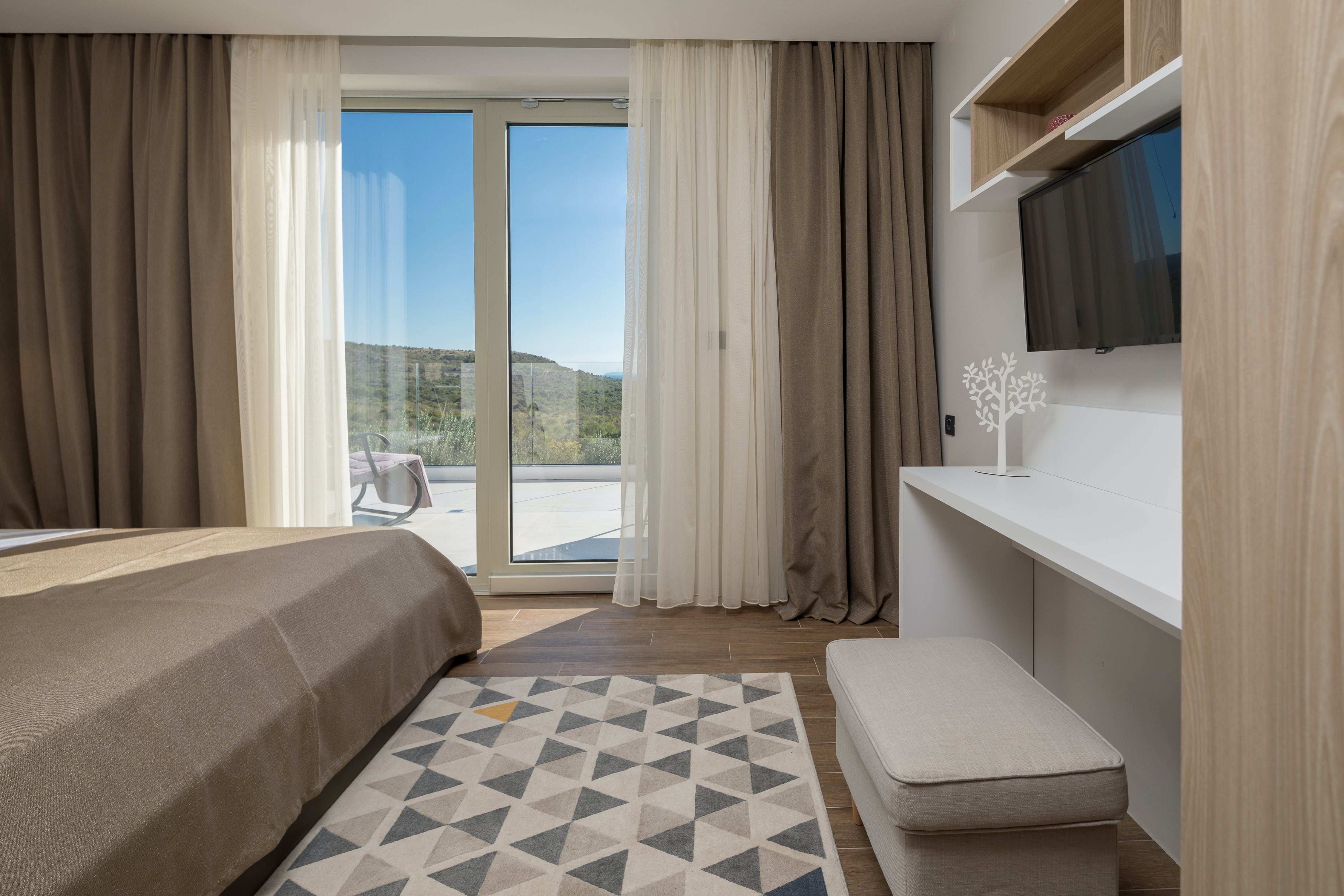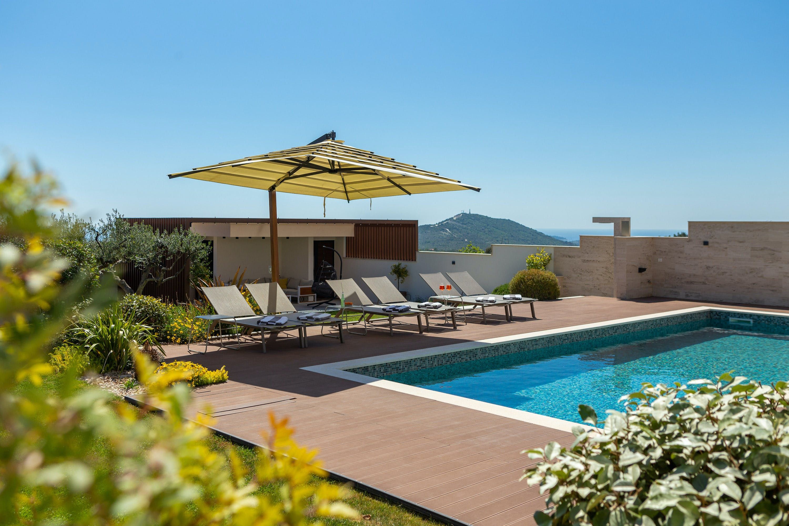 This home is a luxurious villa that offers maritime flair with its white and blue decor, airy fabrics, and distant sea view. The 10m heated pool with surrounding sun terrace and lawn is the heart of the garden, perfect for relaxation on a lounger. The separate lounge corner provides privacy for small groups, while the covered terrace offers a great view of the pool and distant sea. The villa's modern living area has an open-plan design with various niches for privacy. The living-dining room with adjoining kitchen is perfect for indoor relaxation, while the top-modern kitchen is equipped first class for self-catering. The villa has four elegant en-suite bedrooms located on the upper floor, each with high-quality amenities. With TV, sound system, internet, safe, air conditioning, heating, and other impressive amenities, the home is a perfect vacation home in Croatia for eight adults and two children.