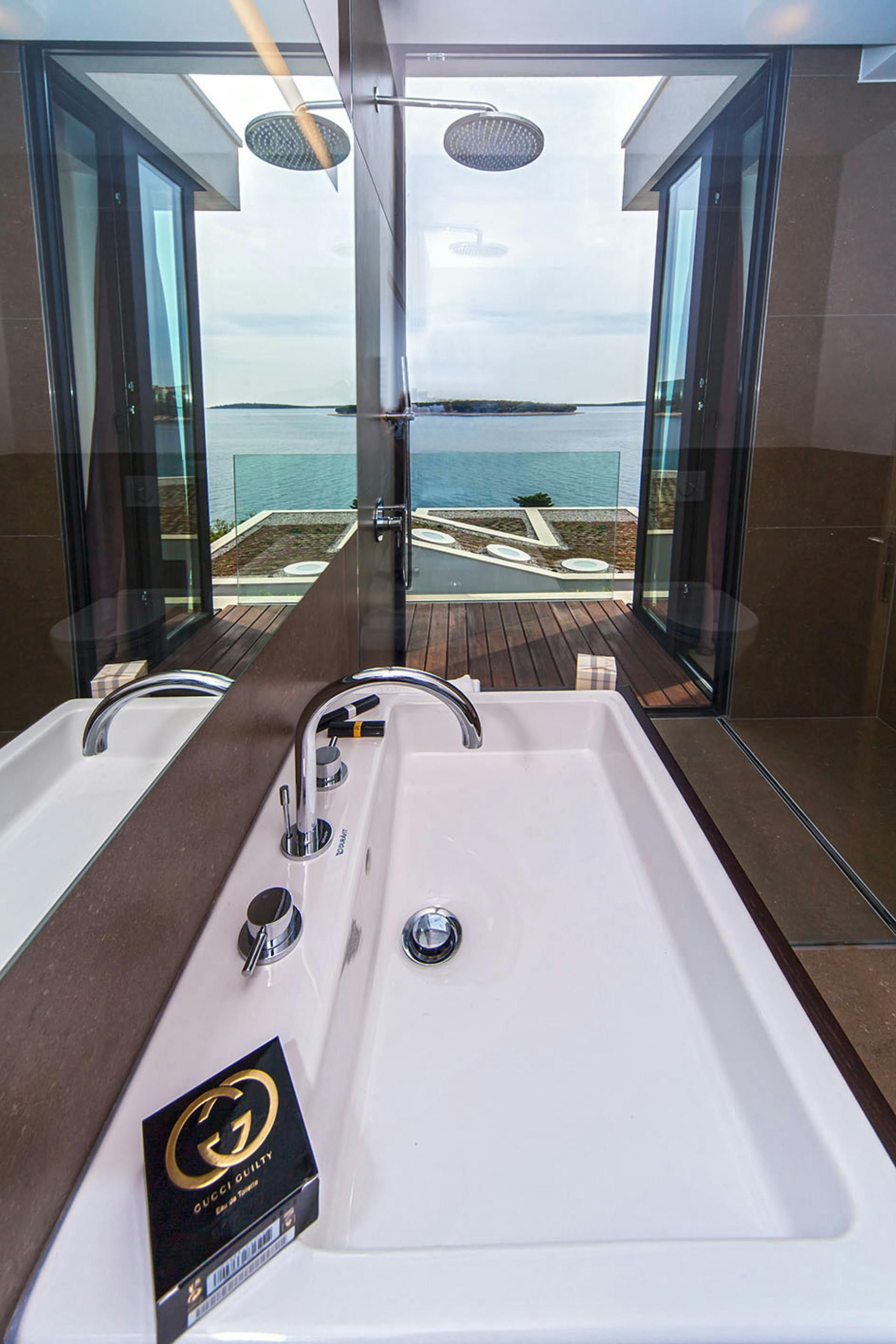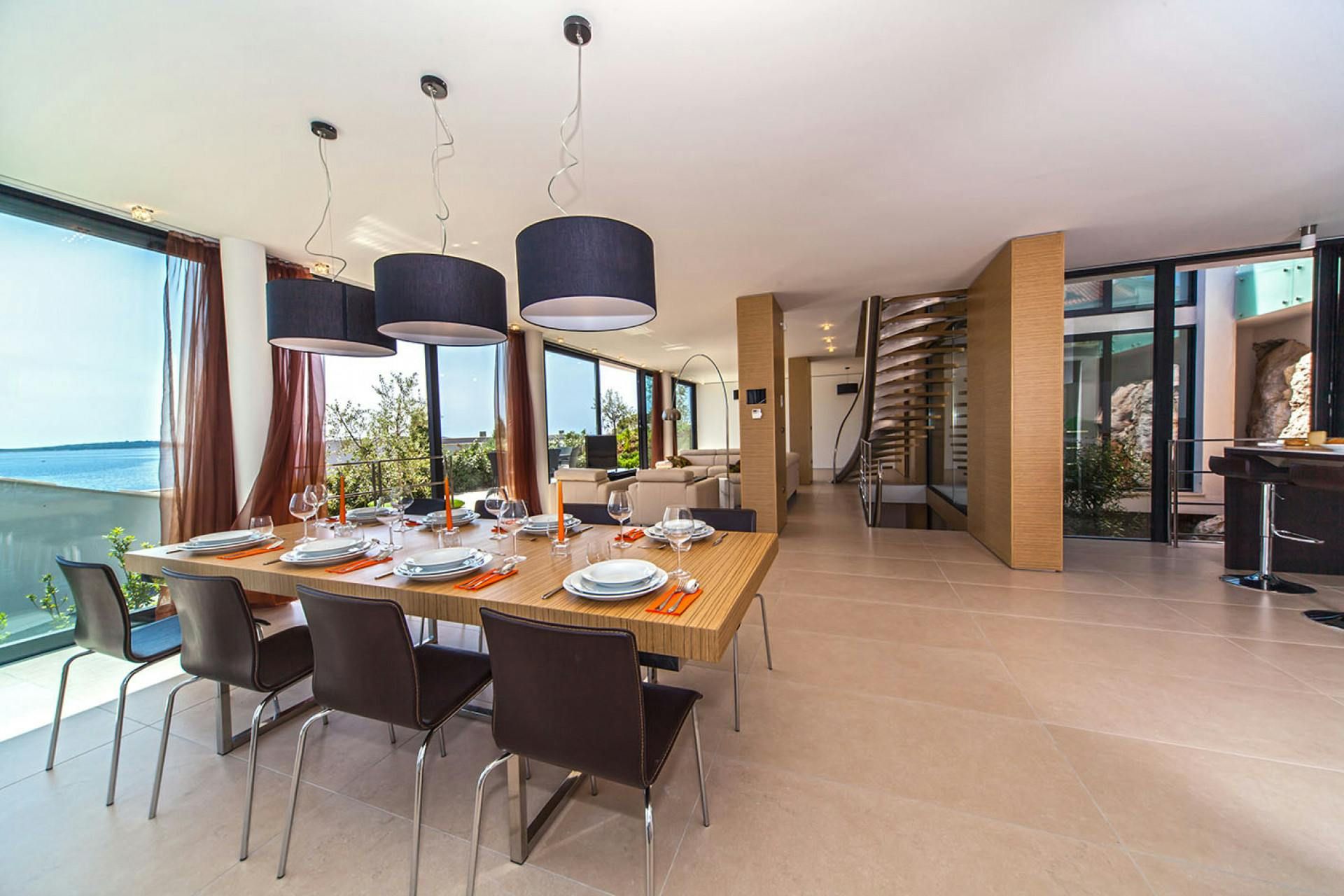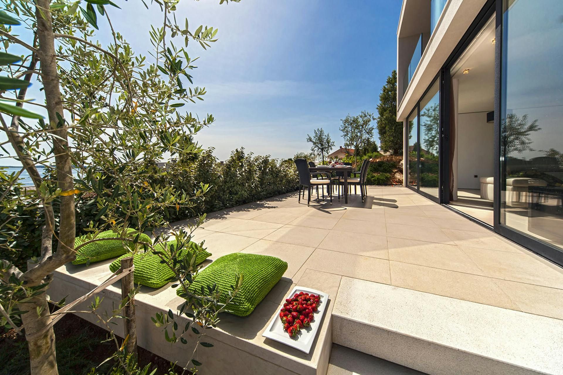This luxurious sea-view villa is the perfect holiday spot for those seeking a high-end getaway. It boasts a swimming pool and loungers under the open sky. Guests can also enjoy the view from the glass terrace on the upper floor while grilling on the barbecue. The interior is an architectural eye-catcher with stylish and high-quality design. The living areas are light-flooded and feature beautifully designed furniture. The villa has three elegantly appointed bedrooms with exquisite en-suite bathrooms. The upper hallway opens to a glass terrace with magnificent sea views. There's also a sauna with a shower and an indoor bike for fitness enthusiasts. The resort property is fenced and video monitored and offers various service offers such as an airport transfer, cleaning or breakfast service, bike rental or great excursion offers. The villa's location is ideal for those who want to enjoy luxury in a relaxing environment while still having access to nearby destinations like Trogir, Split, Šibenik, national parks Paklenica, Krka, Kornati, and Zadar.
