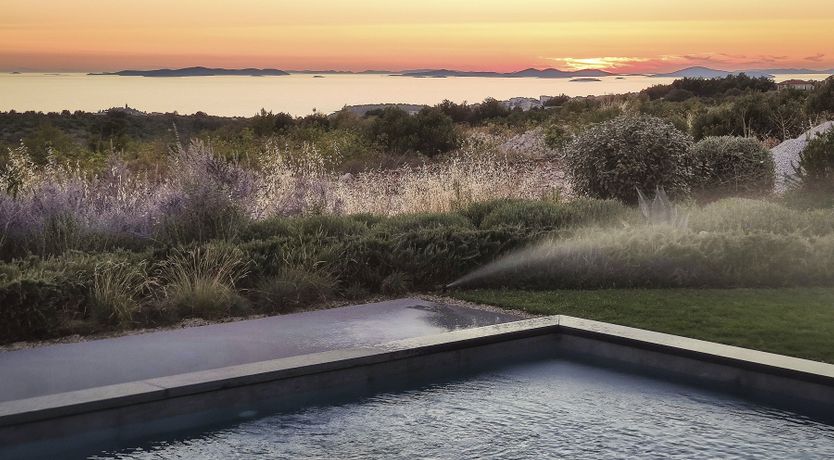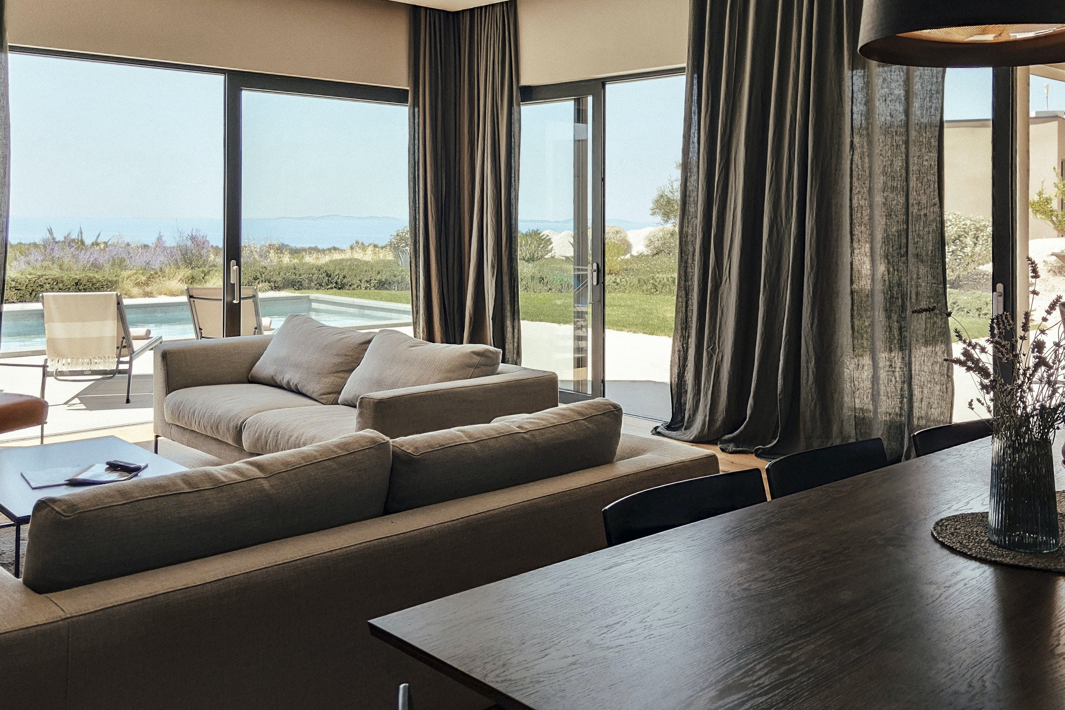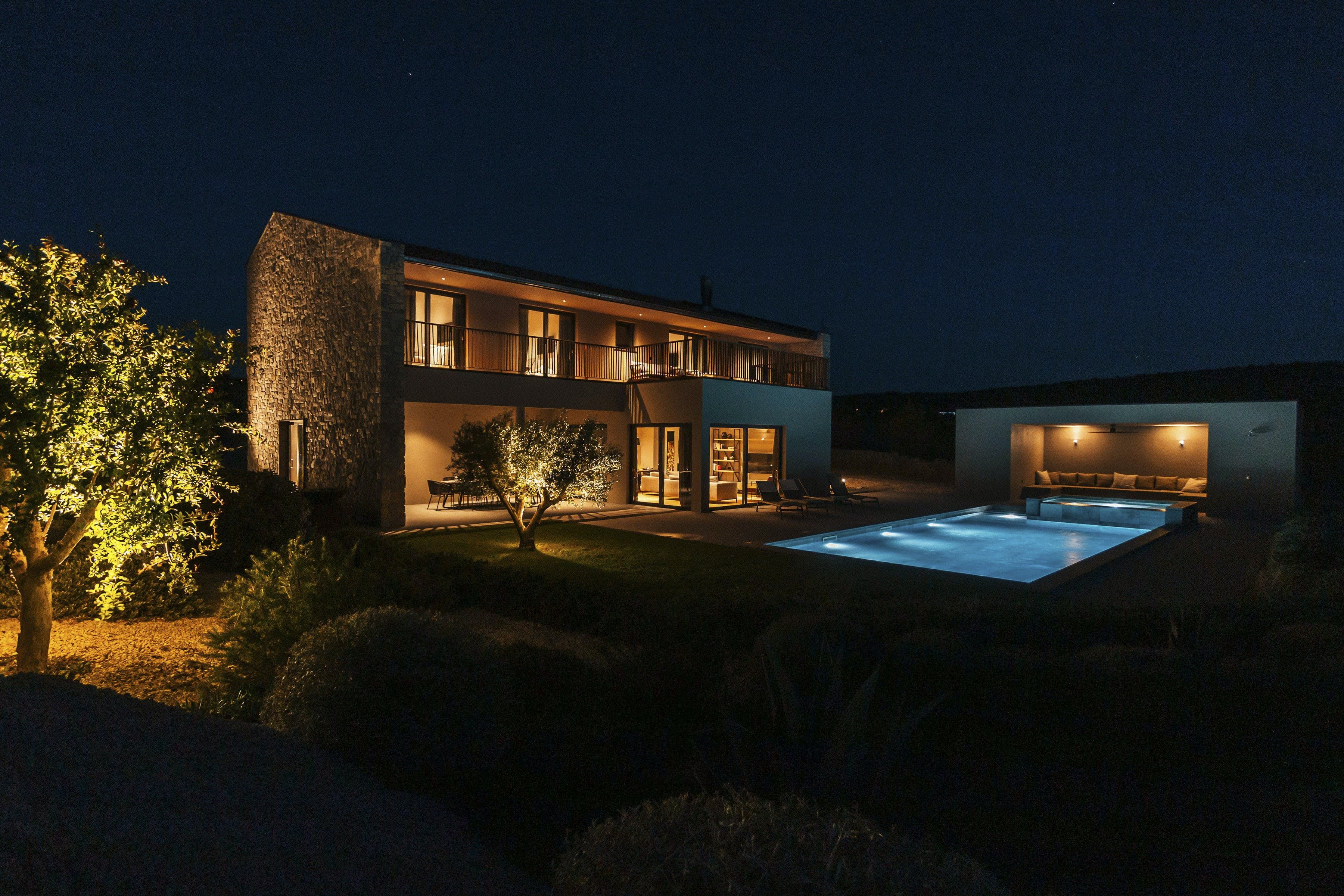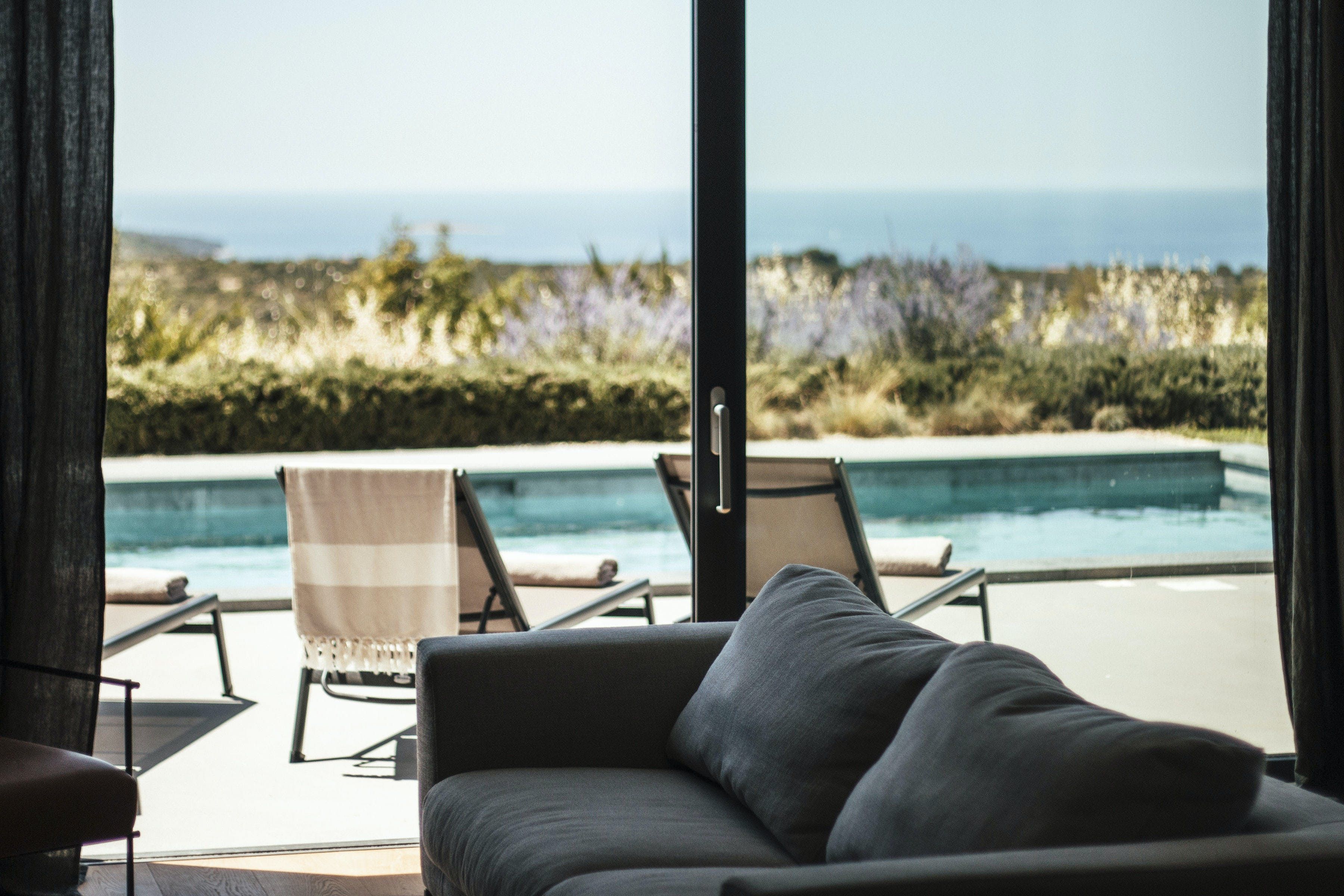 This luxurious villa is perfect for guests seeking a private and peaceful environment with a stunning sea view. The spacious grounds feature a saltwater pool with hydro massage and integrated Jacuzzi, as well as comfortable loungers and a lounge area. The covered terrace includes a large dining table, outdoor kitchen, and electric grill. Spread over two floors, the villa boasts a trendy style with wooden floors and natural tones, while floor-to-ceiling windows create a magical atmosphere. On the first floor, guests will find a cosy living area with fireplace, dining area, ultra-modern kitchen, guest toilet, game room with Playstation and pool table, and one bedroom with en-suite bathroom. The upper floor has four double bedrooms, each with their own en-suite bathroom and balcony or garden access. All bedrooms are fully air-conditioned with their own TV. A baby crib is available upon request.