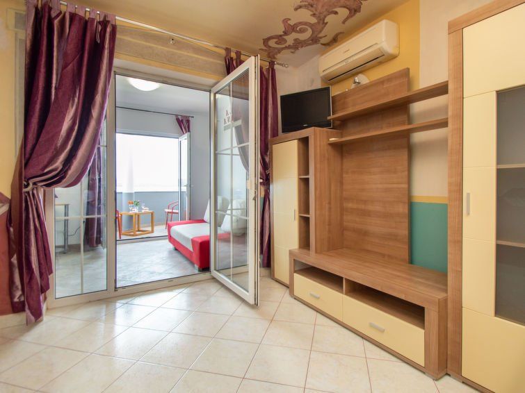 3-room apartment 60 m2 on 1st floor, east facing position. Living room with satellite TV (flat screen), air conditioning. Living room with 1 double sofabed (140 cm, length 200 cm). Exit to the balcony. 1 room with 1 sofabed (70 cm, length 190 cm), 1 french bed (160 cm, length 200 cm).