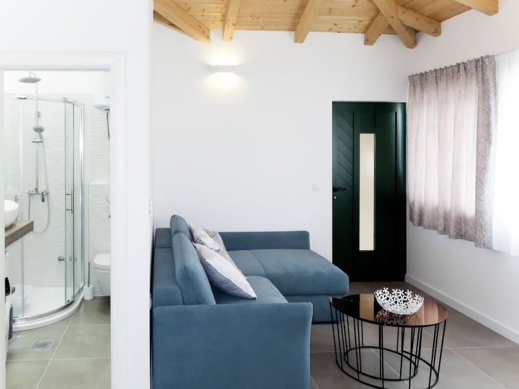 A very nice apartment close to the sea. Nice and quiet. Helpful owner. Comfortable beds, cleanly. Cool town. There is nowhere to walk. Lots of places to bath. Several smaller and larger pebble beaches nearby. Cool lake. We received everything that was in the description. The bar downstairs is not intrusive. Extra pool. Inconvenient sink - too high. I recommend!