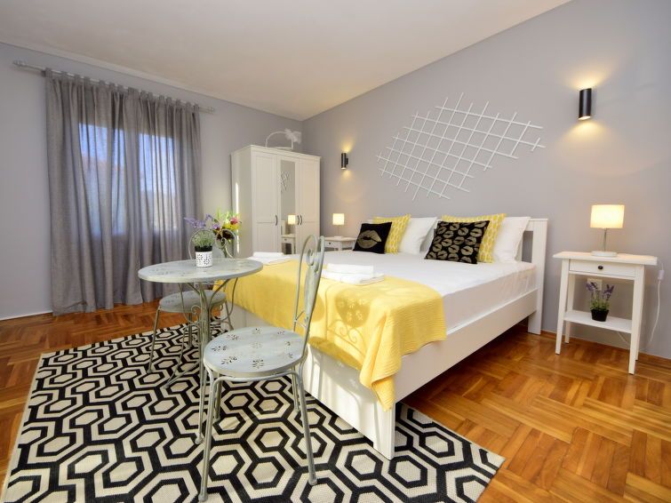 4-room apartment 90 m2, on the ground floor, south facing position. Living/dining room with cable TV (flat screen), air conditioning. Exit to the terrace. 1 room with 1 french bed (160 cm, length 200 cm), cable TV (flat screen). Exit to the terrace. 1 room with 2 beds (90 cm, length 200 cm).