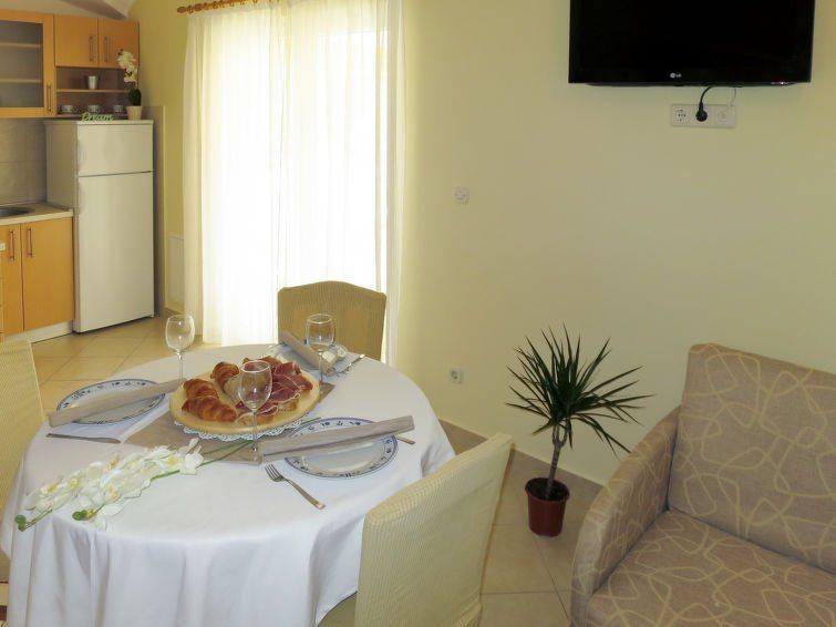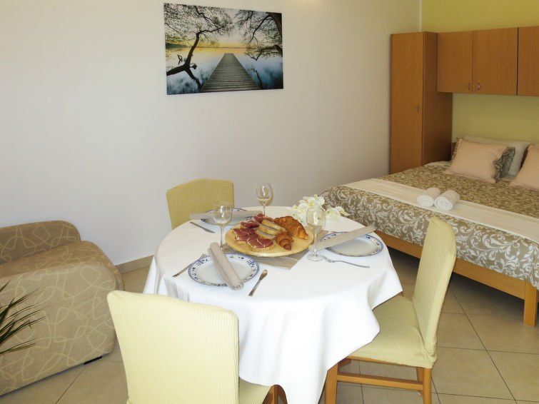 "Toni", 1-room apartment 30 m2 on 2nd floor. Studio with 1 sofabed, 1 double bed, 1 sleeping facility, dining table, satellite TV and air conditioning. Exit to the balcony. Open kitchen (2 hot plates, dishwasher, toaster, kettle, freezer, electric coffee machine). Shower/WC. No heating option.