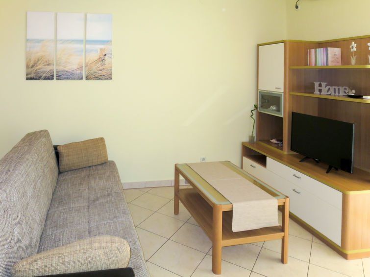 In and of itself it is a small, clean, adequate apartment for a holiday for 4 people, 2 bedrooms and a living room. However, the view from the beautiful large balcony is no longer the one shown in the photos. You can only see a tiny bit of the sea now, as there are now 2 new houses in front of it. The kitchen is very spartanly furnished, luckily I had a few utensils from home with me. Otherwise the family who owns the apartment was very nice.