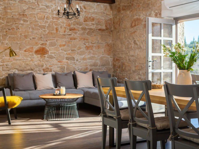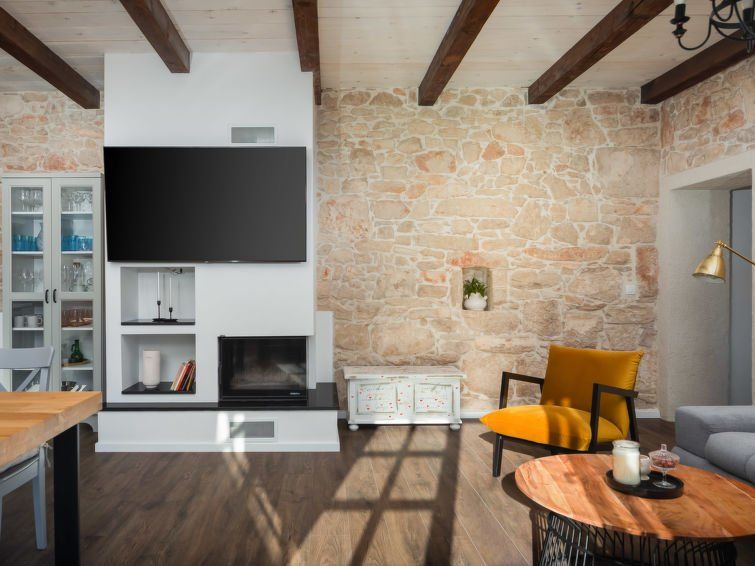 4-room house 125 m2 on 2 levels. Living/dining room 48 m2 with open-hearth fireplace and satellite TV (flat screen), air conditioning. Exit to the terrace. 1 room with 2 beds (90 cm, length 200 cm), satellite TV (flat screen), air conditioning. Open kitchen (oven, dishwasher, 4 ceramic glass hob hotplates, toaster, kettle, microwave, freezer, electric coffee machine).