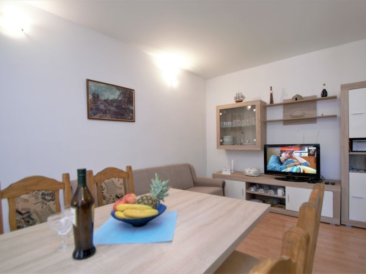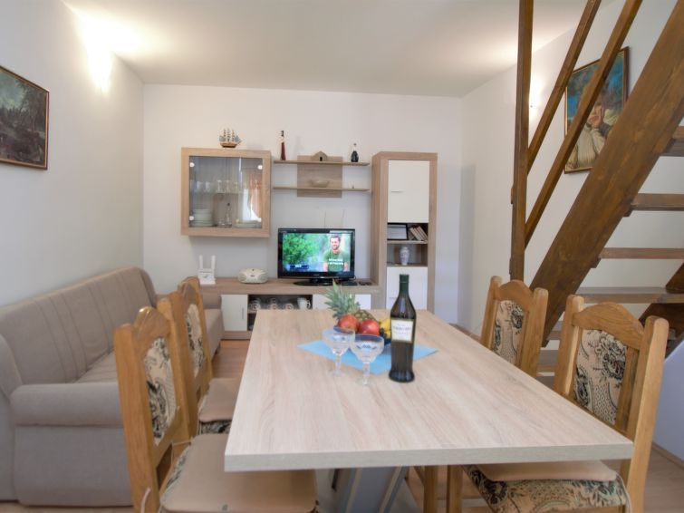 3-room semi-detached house 68 m2 on 2 levels, south facing position. Living/dining room with 1 sofabed (100 cm, length 190 cm), TV. Open kitchen (3 hot plates, oven, 3 gas rings, kettle, freezer, electric coffee machine). Top floor: (steep stair) entrance hall with air conditioning.