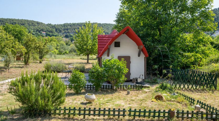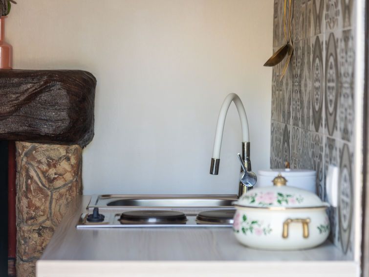 1-room bungalow 15 m2. Living/sleeping room with 1 pull-out bed (2 pers. 2 x 80 cm, length 200 cm), TV (flat screen), air conditioning. Exit to the terrace. Open gallery with sloping ceilings, ceiling height 10 - 100 cm with 1 sleeping facility (140 cm, length 200 cm). Open kitchen (2 hot plates, kettle).