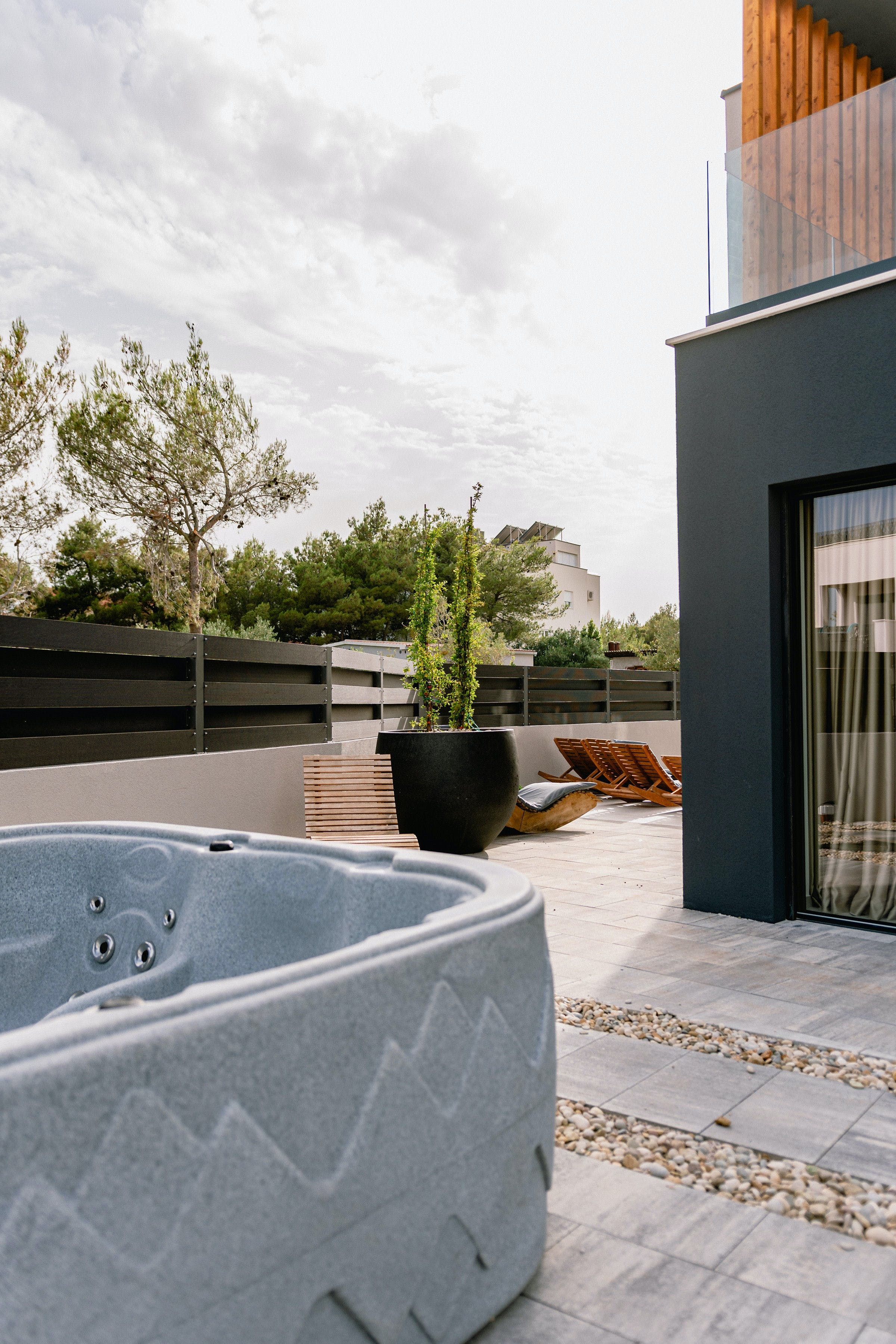 This modern villa was designed for relaxation. There’s a private pool and a terrace with a hot tub, while inside there’s a sauna to unwind in. This is a great place to spend time with family and friends. We love the main bedroom with its balcony too. Location-wise, the address is excellent. Explore the nearby historic town of Šibenik or go on an adventure to the Krka and Kornati National Park. With the ferry port of Vodice a short drive away, you can also visit Trogir and Split. And the local beach is only 500 metres away – visit it on foot or with the bicycles provided.