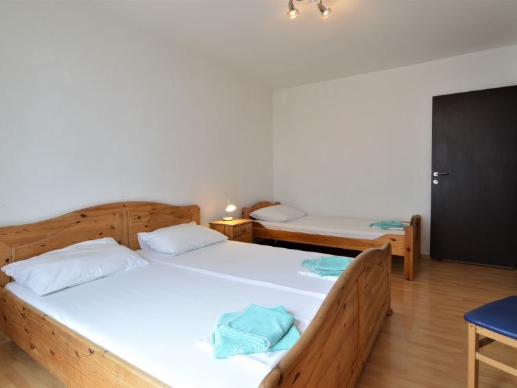 "Josip", 2-room apartment 50 m2 on 1st floor. Living/dining room with 1 double sofabed, satellite TV and air conditioning. 1 room with 1 bed and 1 double bed. Exit to the balcony. Kitchen (1 hot plate, oven, 3 gas rings, toaster, kettle, microwave, freezer, electric coffee machine).