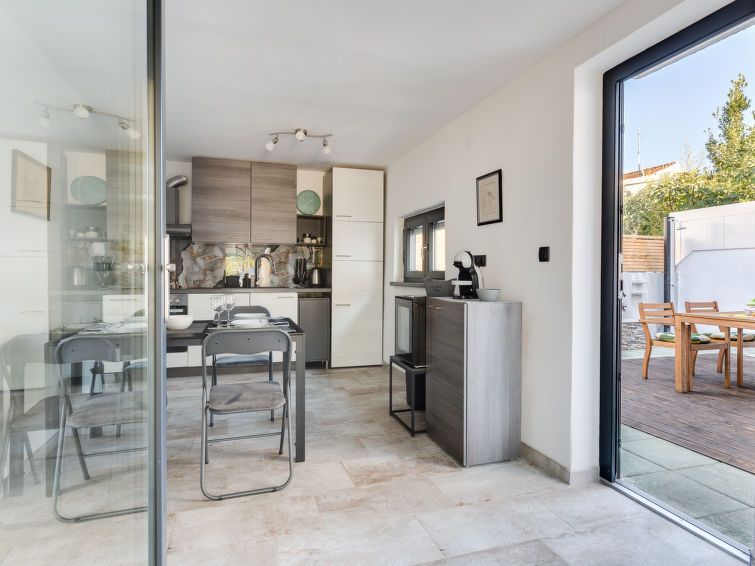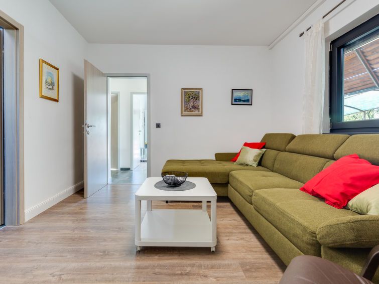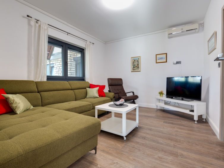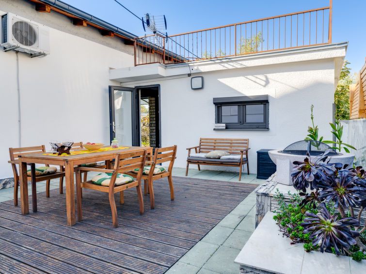 3-room semi-detached house 100 m2. Living room with 1 sofabed (120 cm, length 200 cm), shower/WC and satellite TV (flat screen), air conditioning. 1 room with 1 french bed (160 cm, length 200 cm), air conditioning. Exit to the terrace. 1 room with 2 beds (90 cm, length 190 cm), air conditioning.